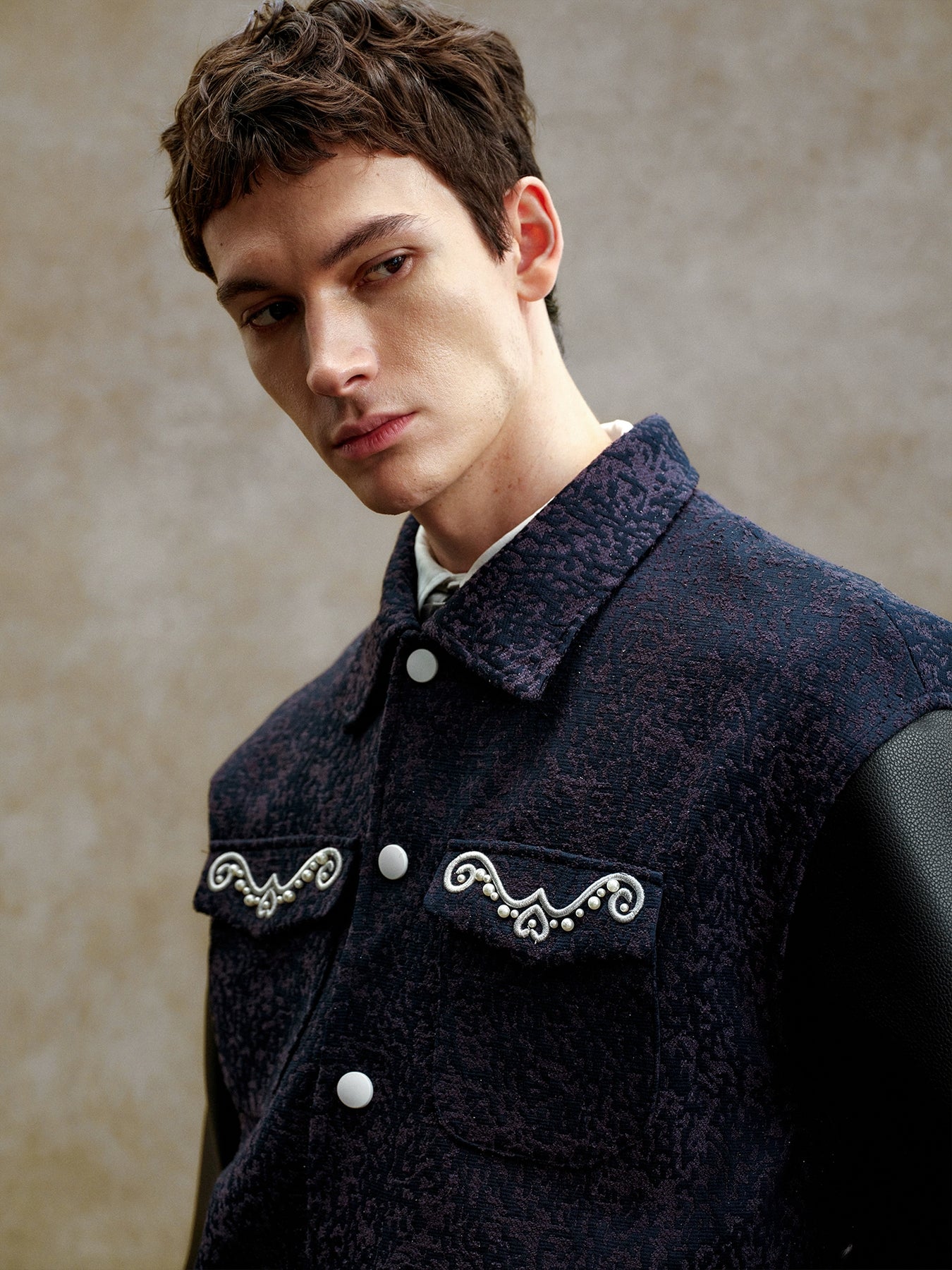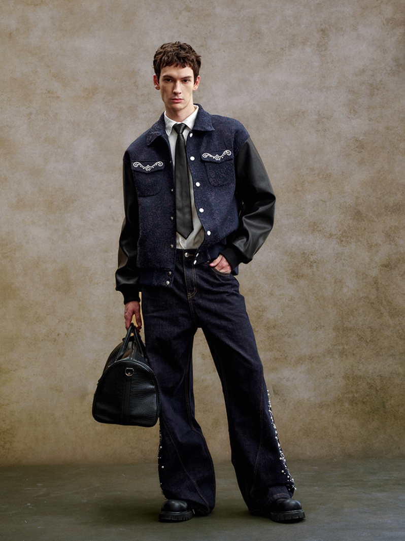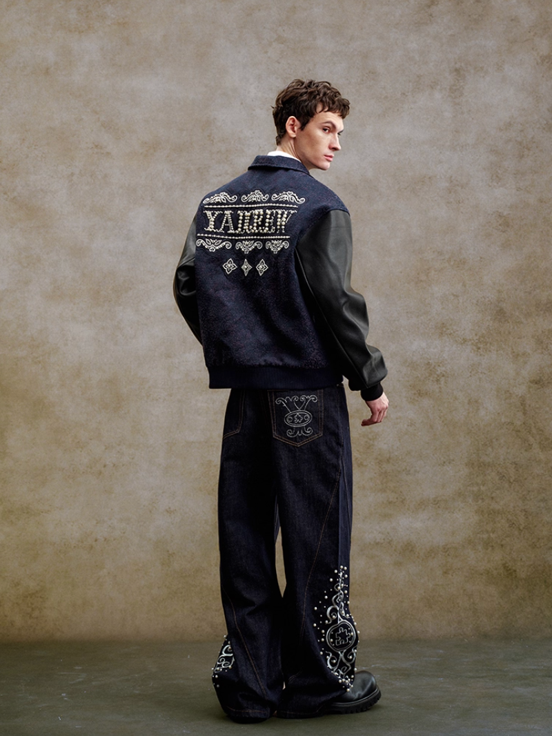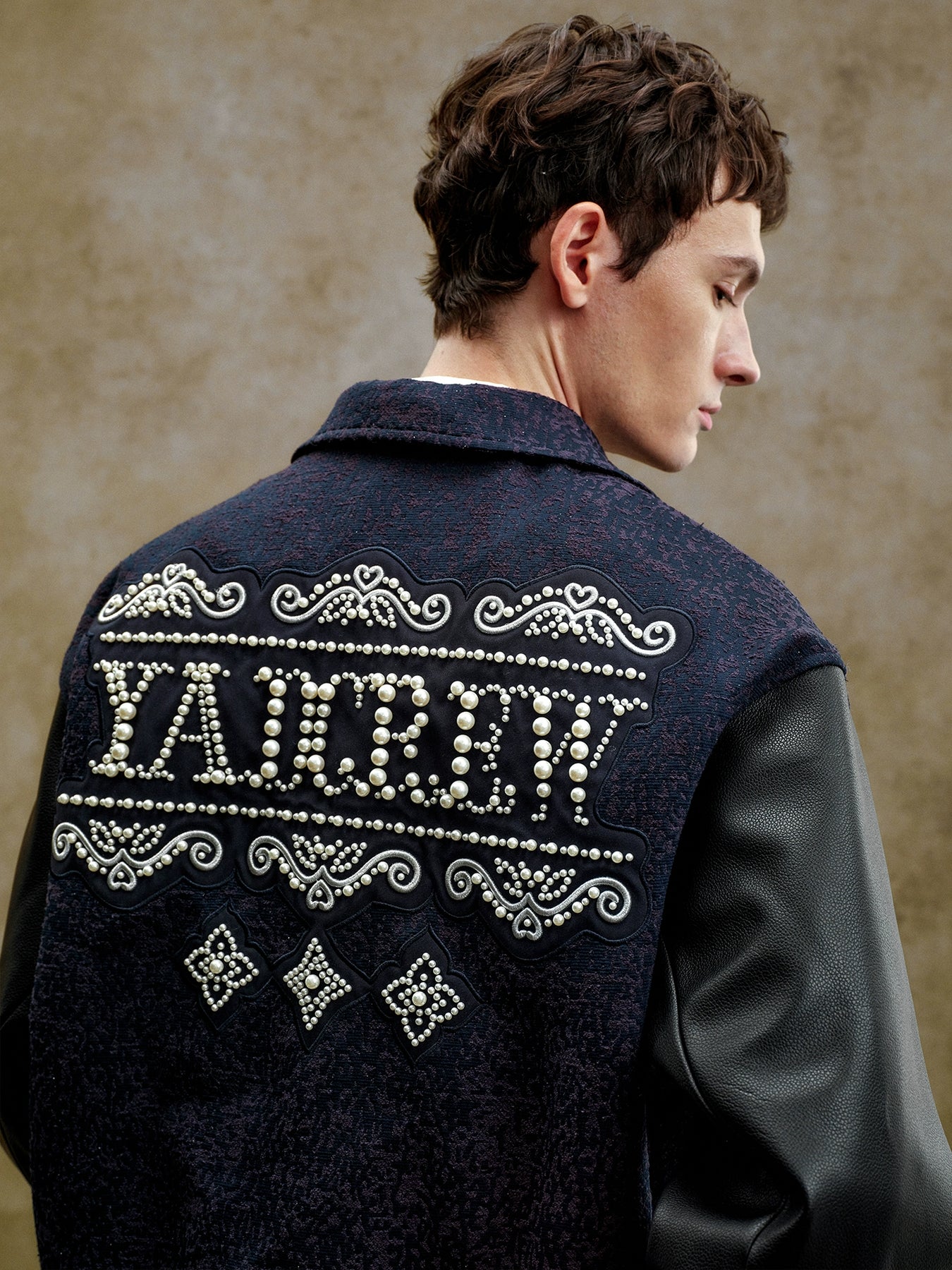 YADcrew Pearl Patch Embroidered Varsity Jacket | Face 3 Face