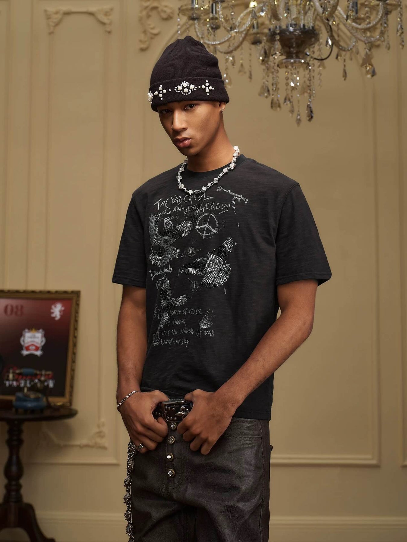 YADcrew Vintage Rhinestone Camo Dove Tee