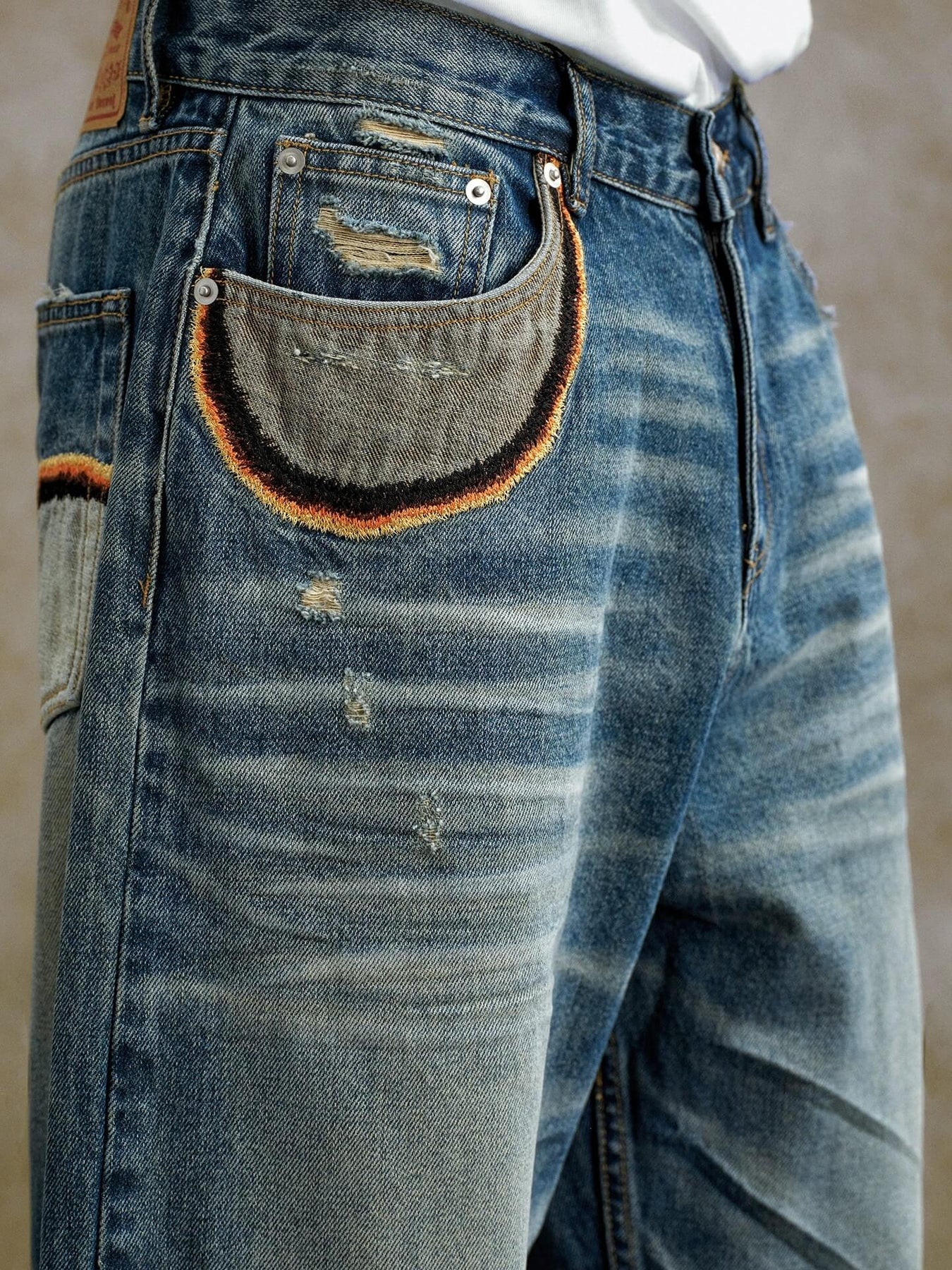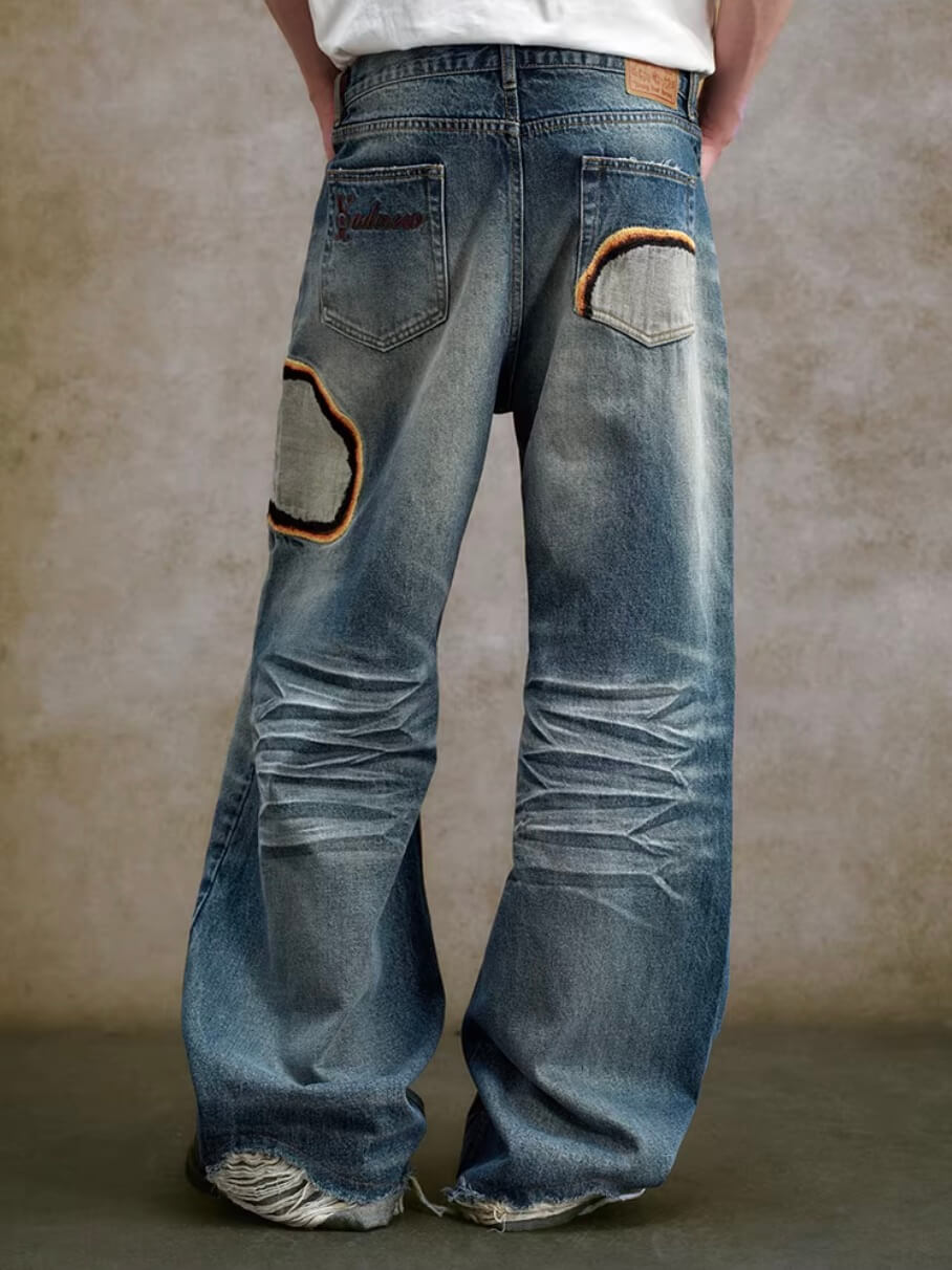 YADcrew Scorched Embroidery Washed Distressed Whisker Jeans