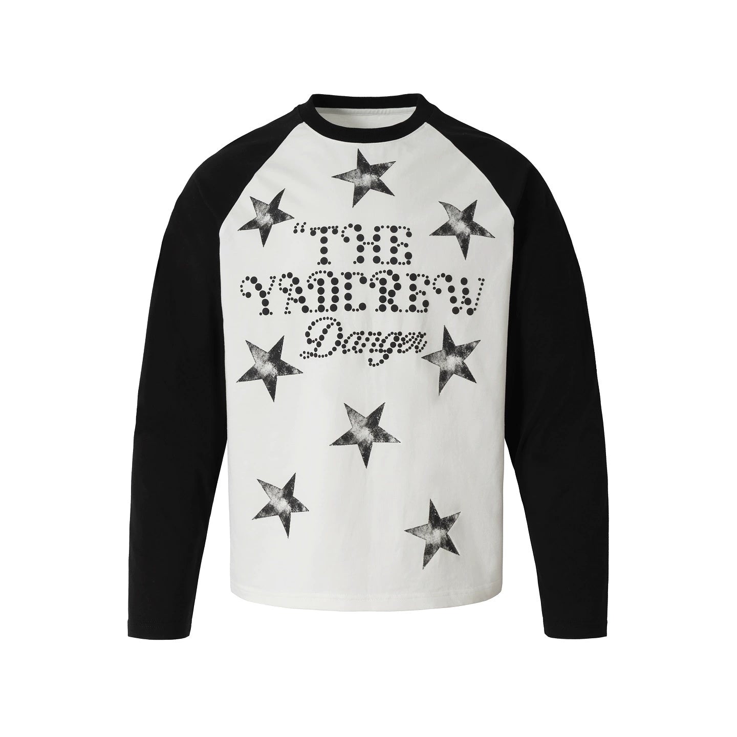YADcrew Star Logo Print Raglan Long Sleeve Tee