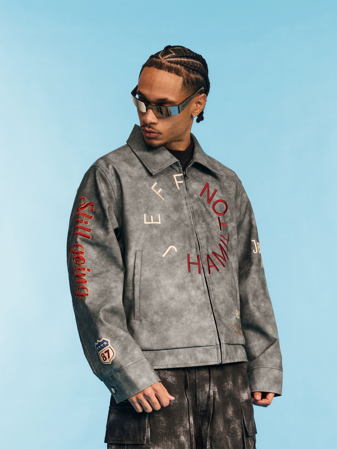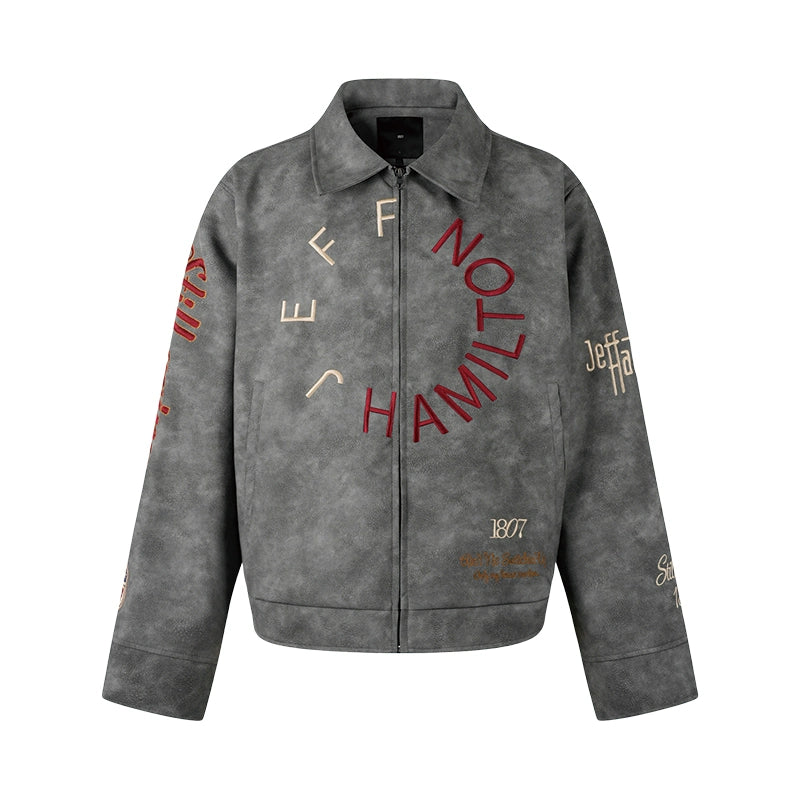 1807 JEFF HAMILTON Logo Embroidered Leather Detroit Jacket | Face 3 Face