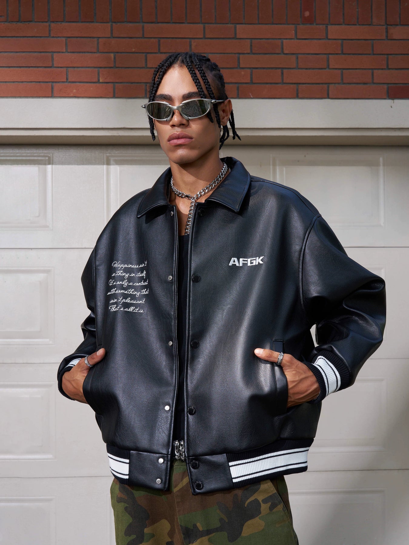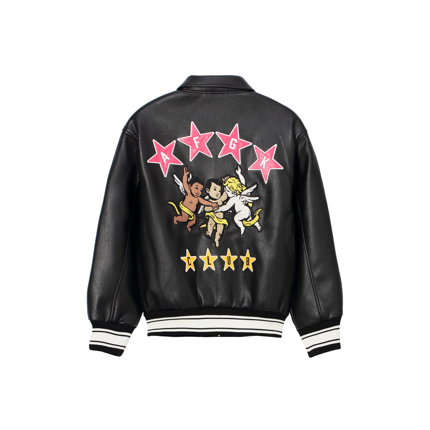 AFGK Star Angel Embroidered Racing Leather Jacket
