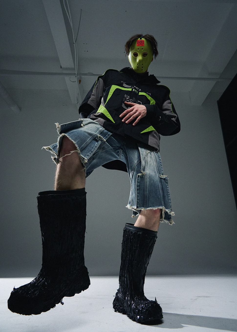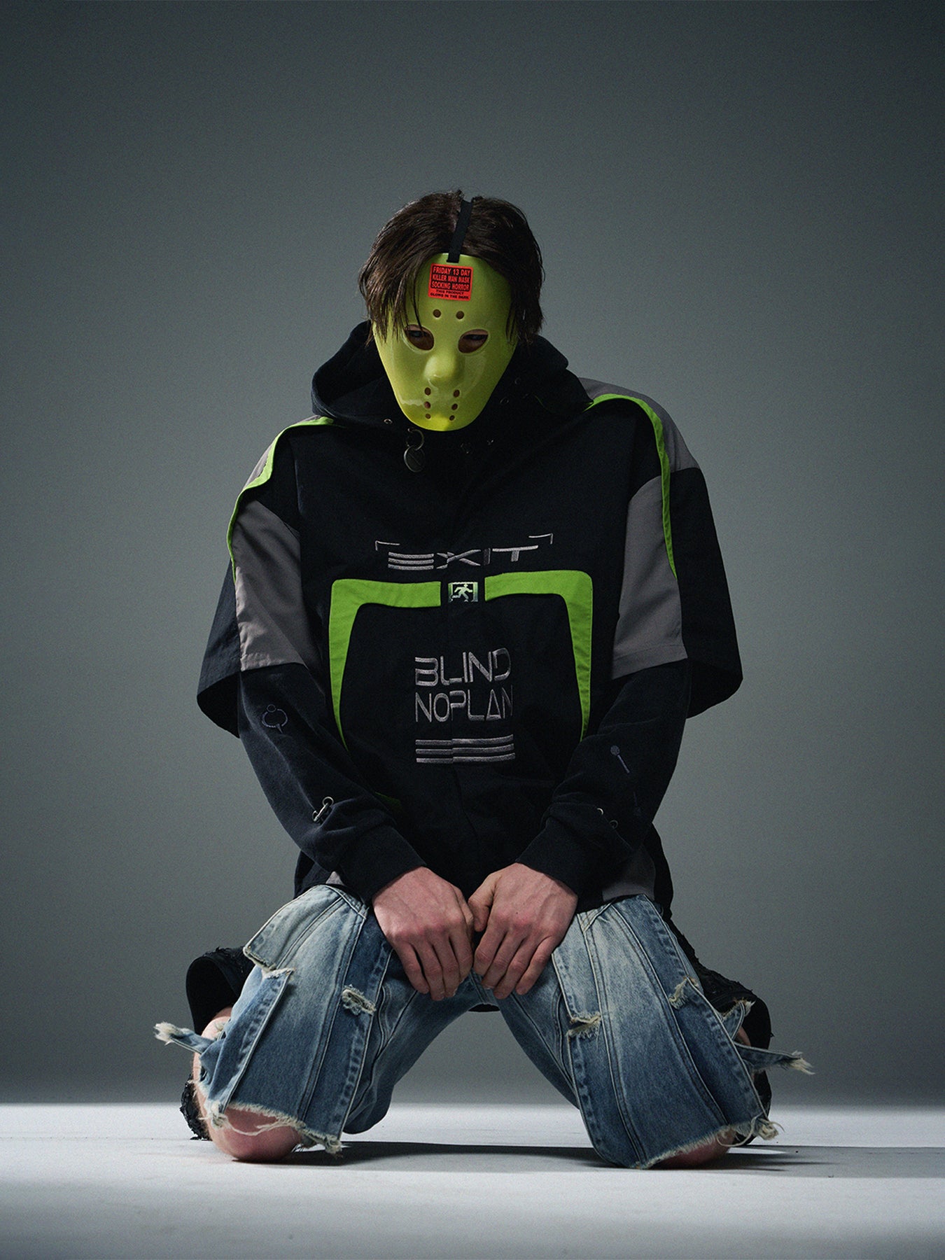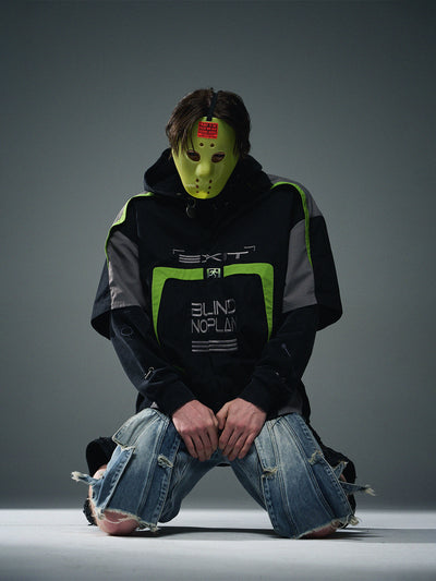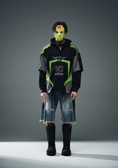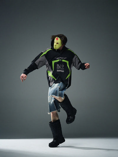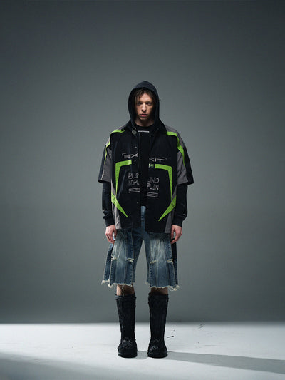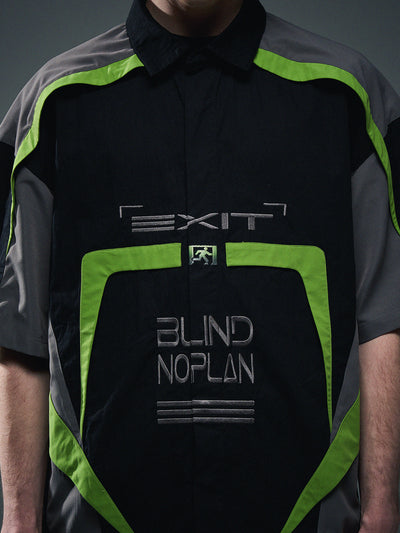 BLIND NO PLAN Colorblocked Racing Heavy Embroidery Short Sleeve Shirt | Face 3 Face