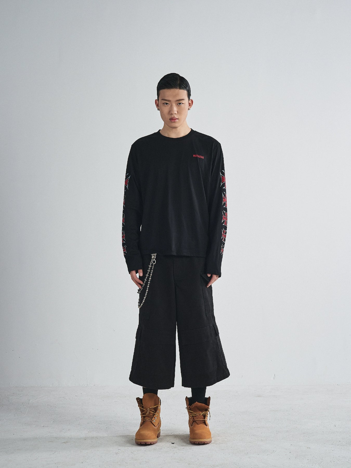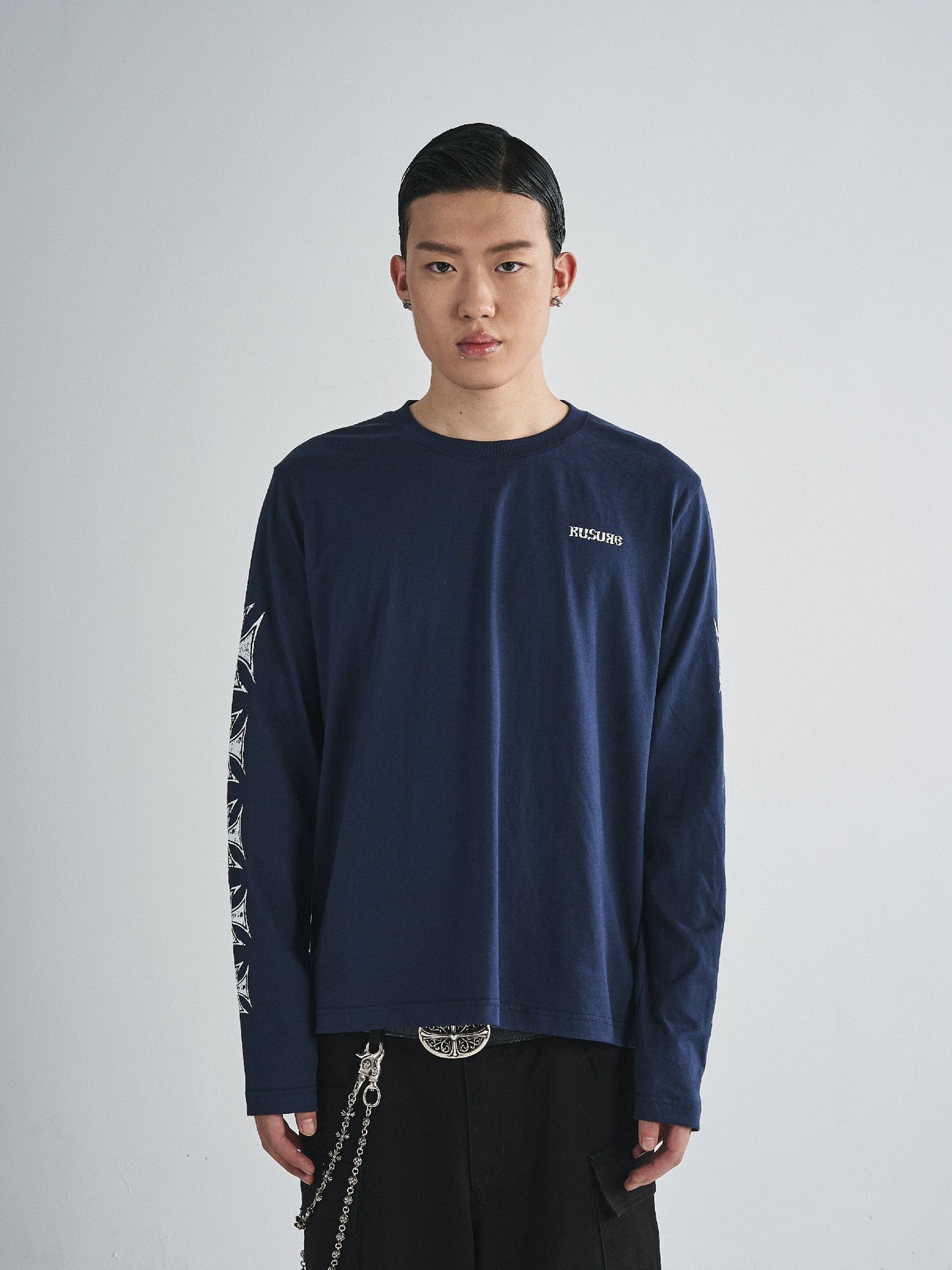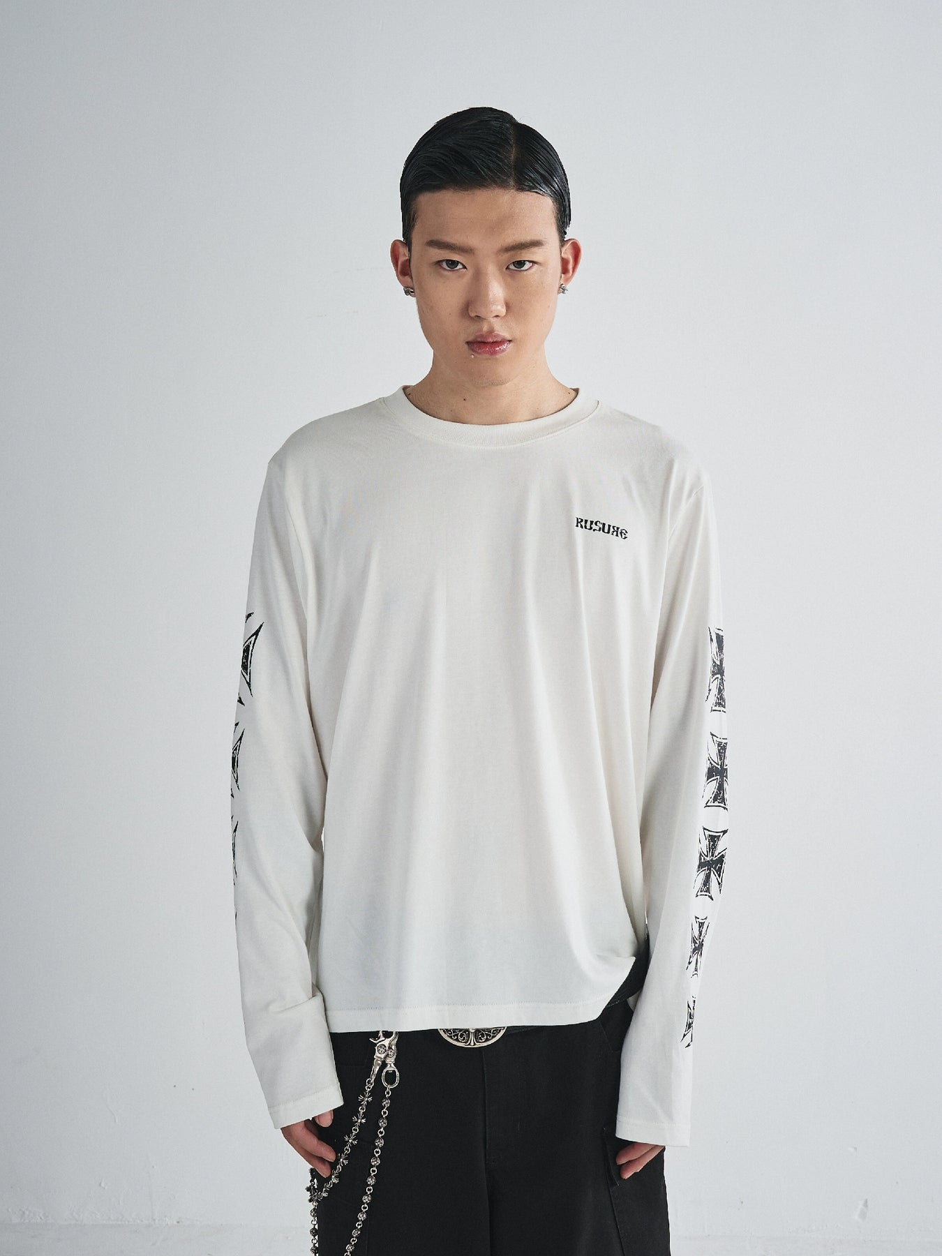 RUSURE Cross Logo Print Long Sleeve Tee