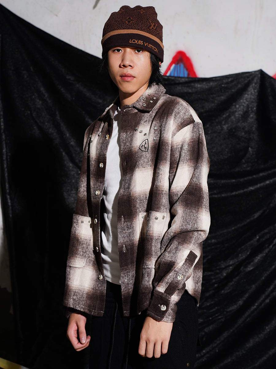 TGFCLUB Plaid Embroidered Rhinestone Long Sleeve Shirt | Face 3 Face