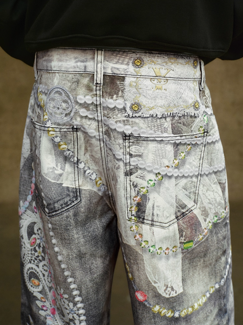 YADcrew Lace Color Bead Chain Photorealistic Print Jeans | Face 3 Face
