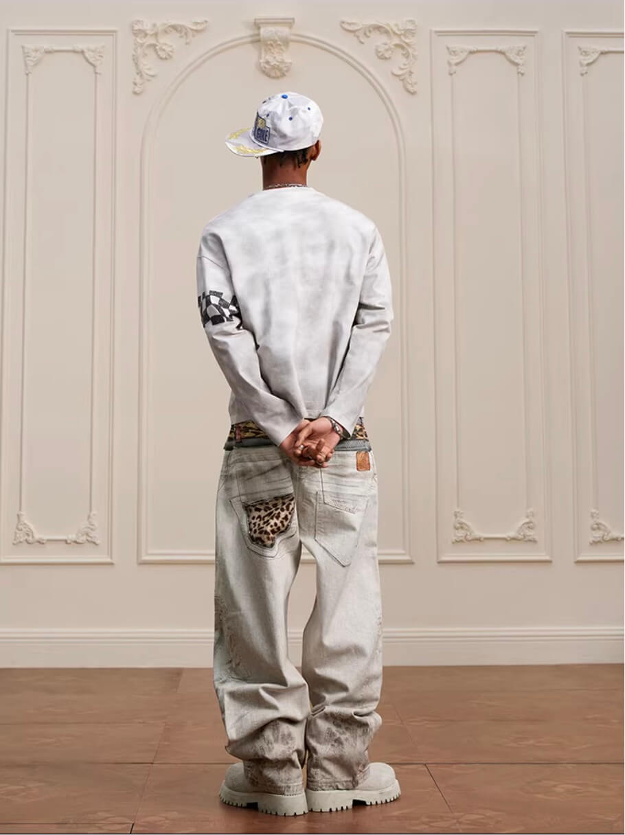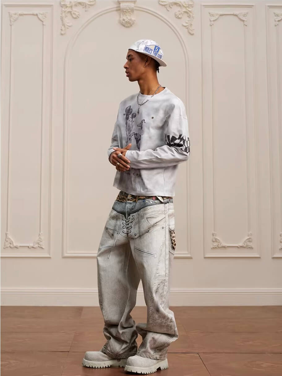 YADcrew Leopard Belt Double Waist 3D Digital Print Machete Jeans | Face 3 Face