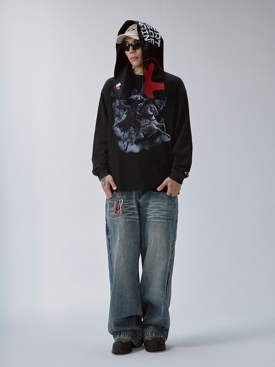 F2CE Washed Dark Print Long Sleeve Tee | Face 3 Face