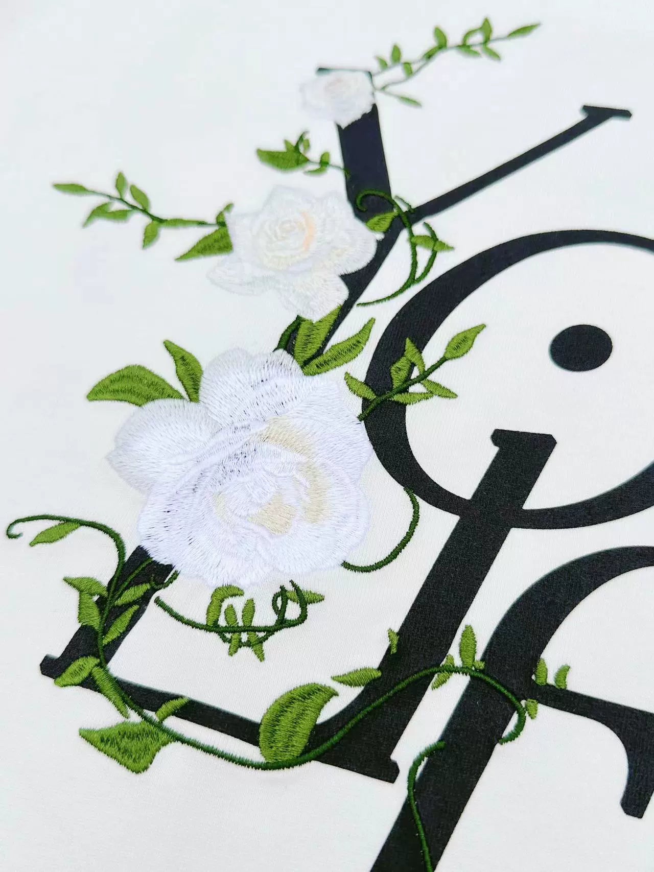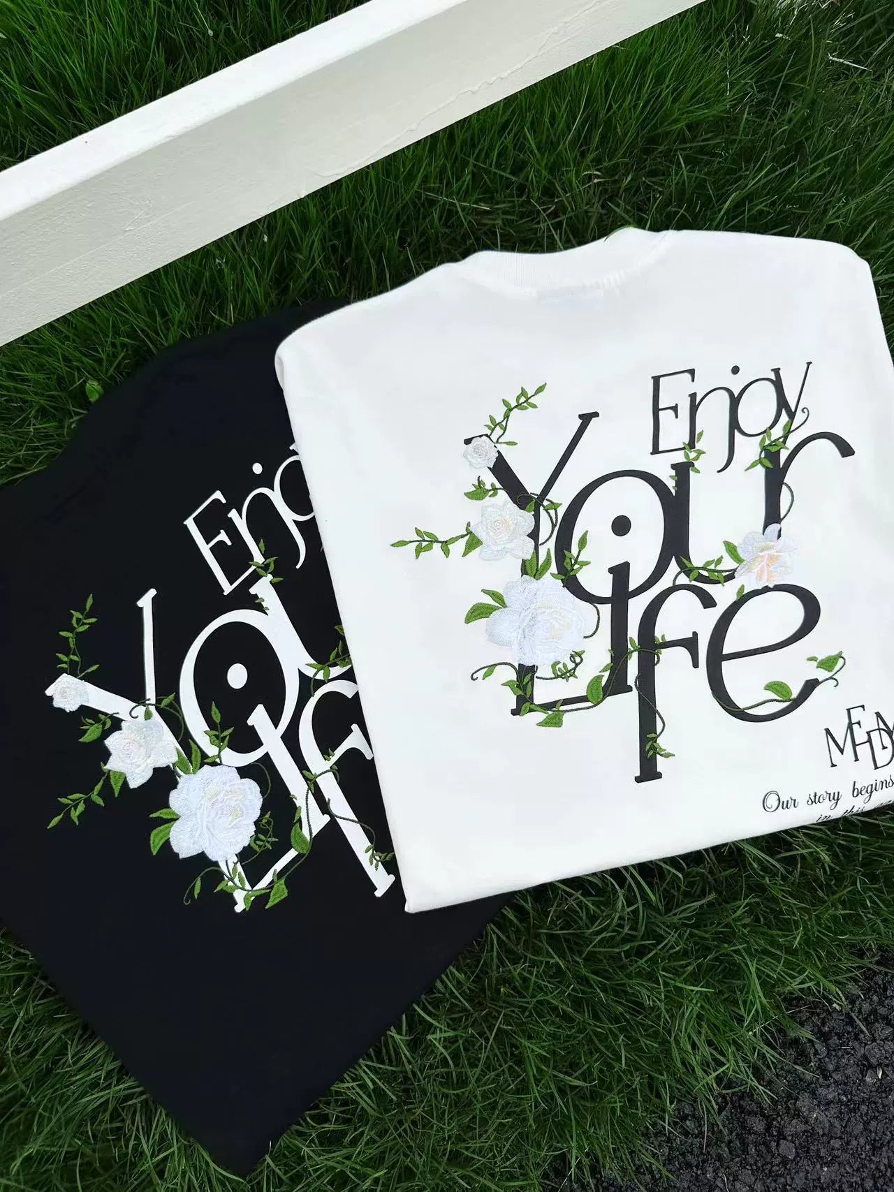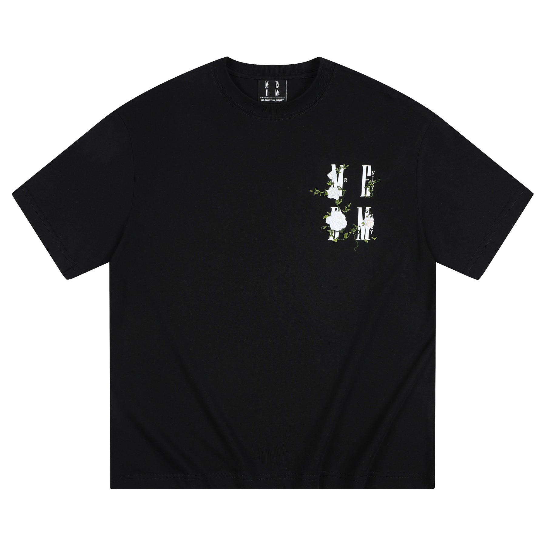 MEDM 3D Flower Embroidered Letter Print Tee | Face 3 Face
