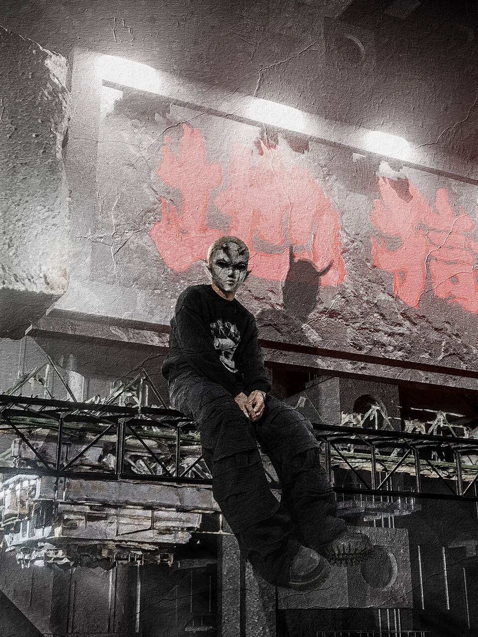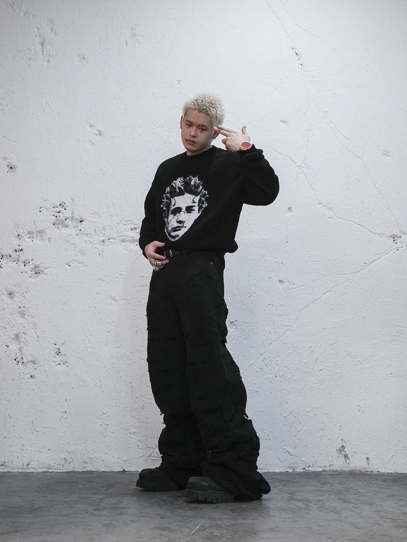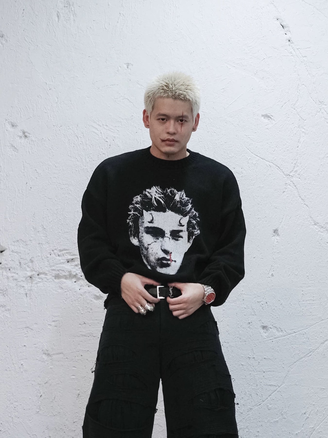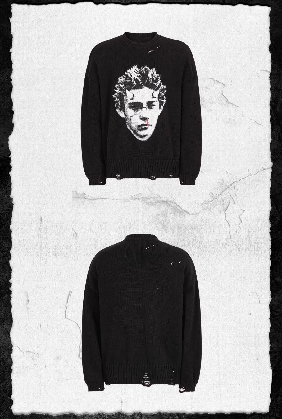 UNDERWATER Demon Digital Print Distressed Knit Sweater | Face 3 Face