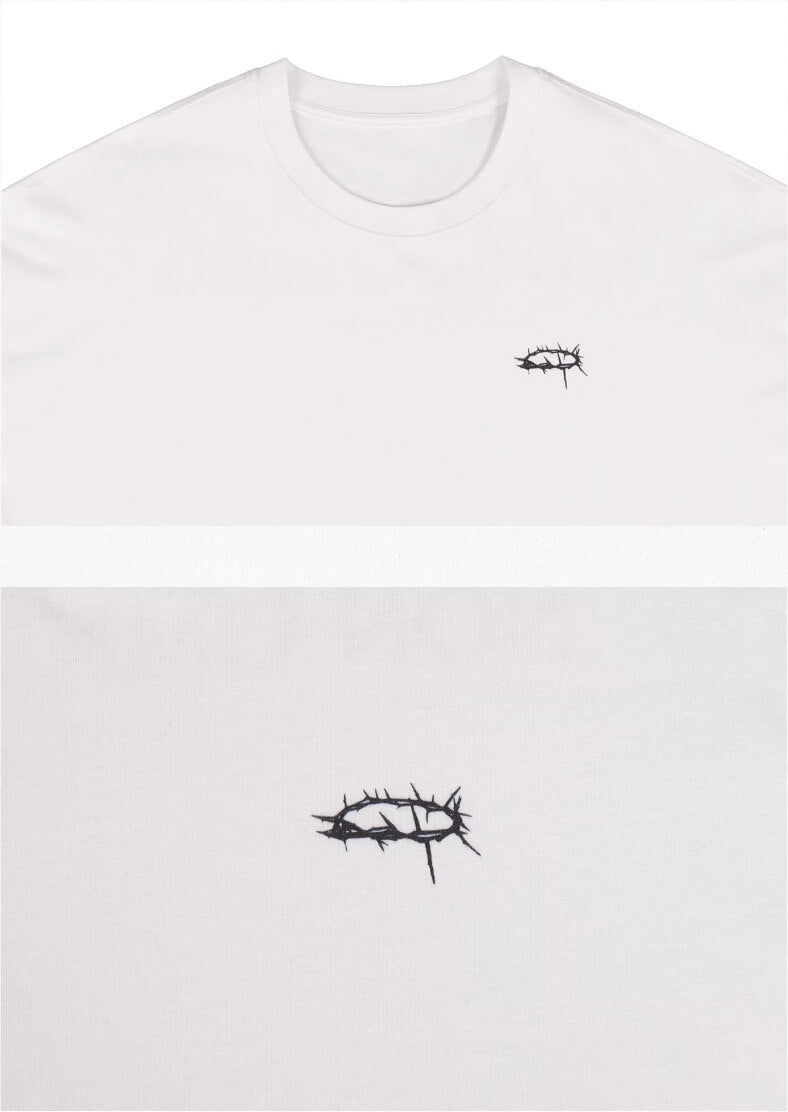 UNDERWATER White Thorn Ring Logo Print Long Sleeve Tee