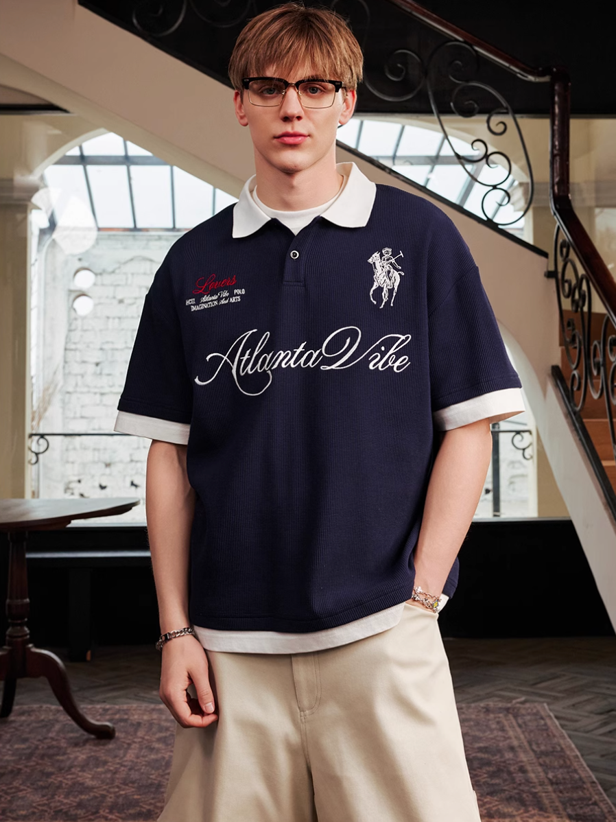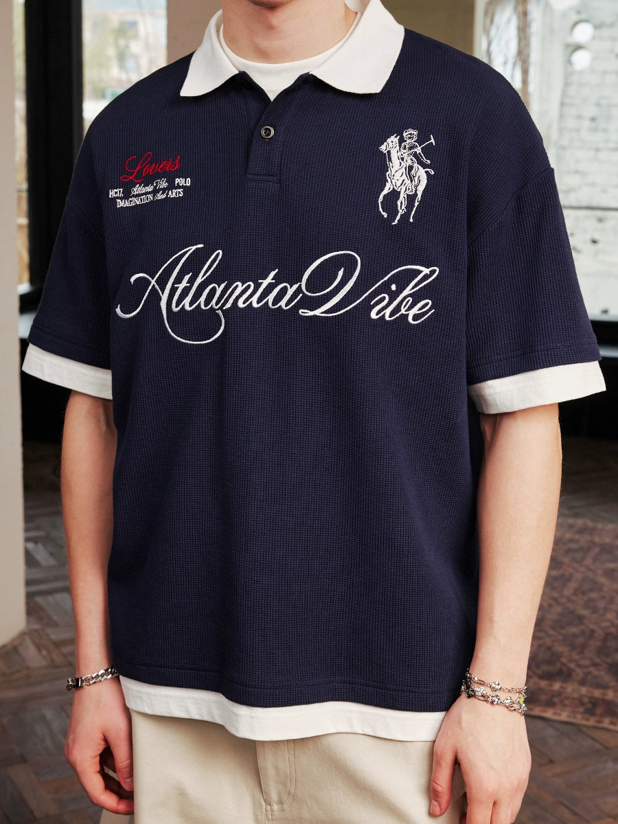 Harsh and Cruel Waffle Knit Embroidered Layered Polo