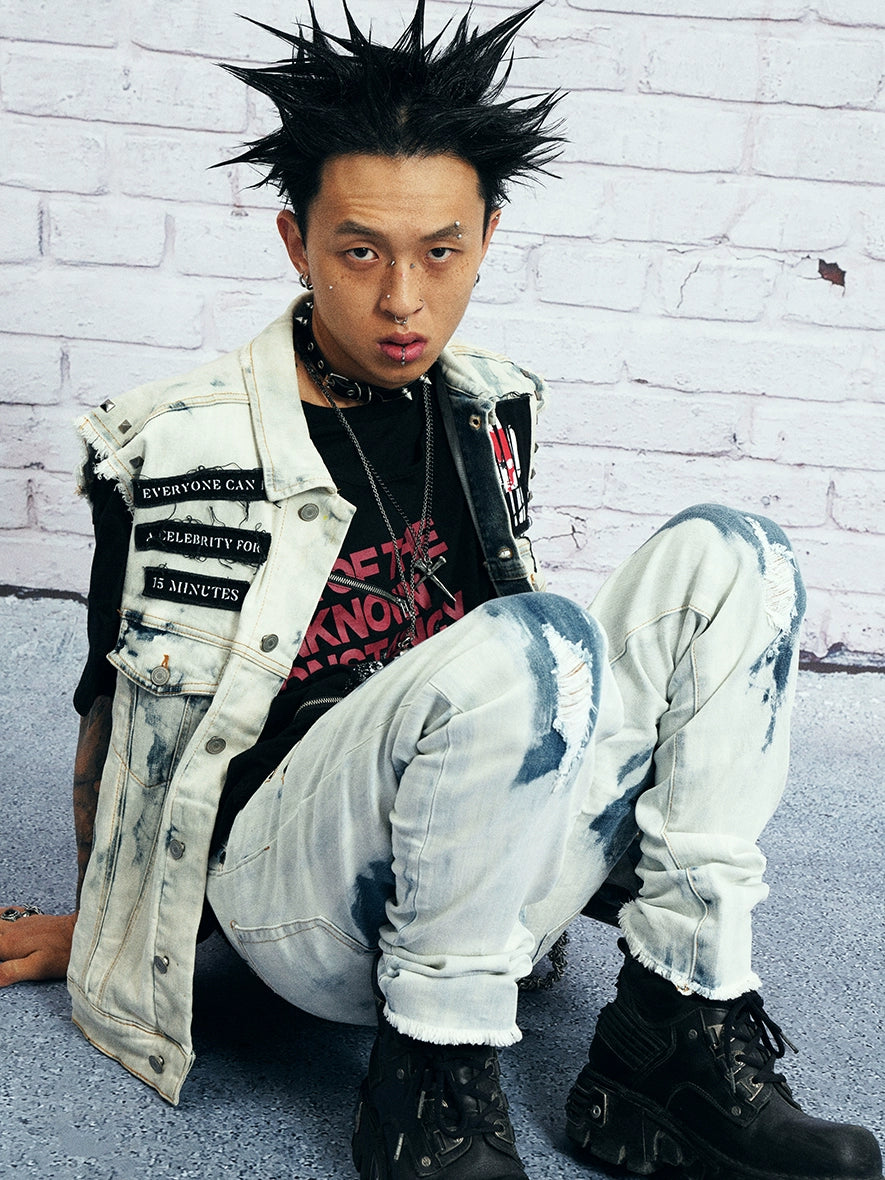 VENTUREK Bleach Wash Rivet Zipper Slim Jeans | Face 3 Face