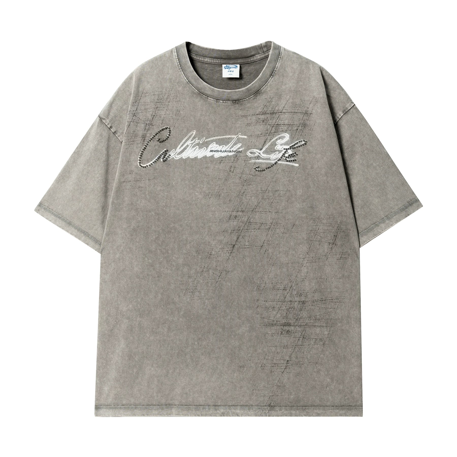 JHYQ Washed Beads Abrasion Print Tee