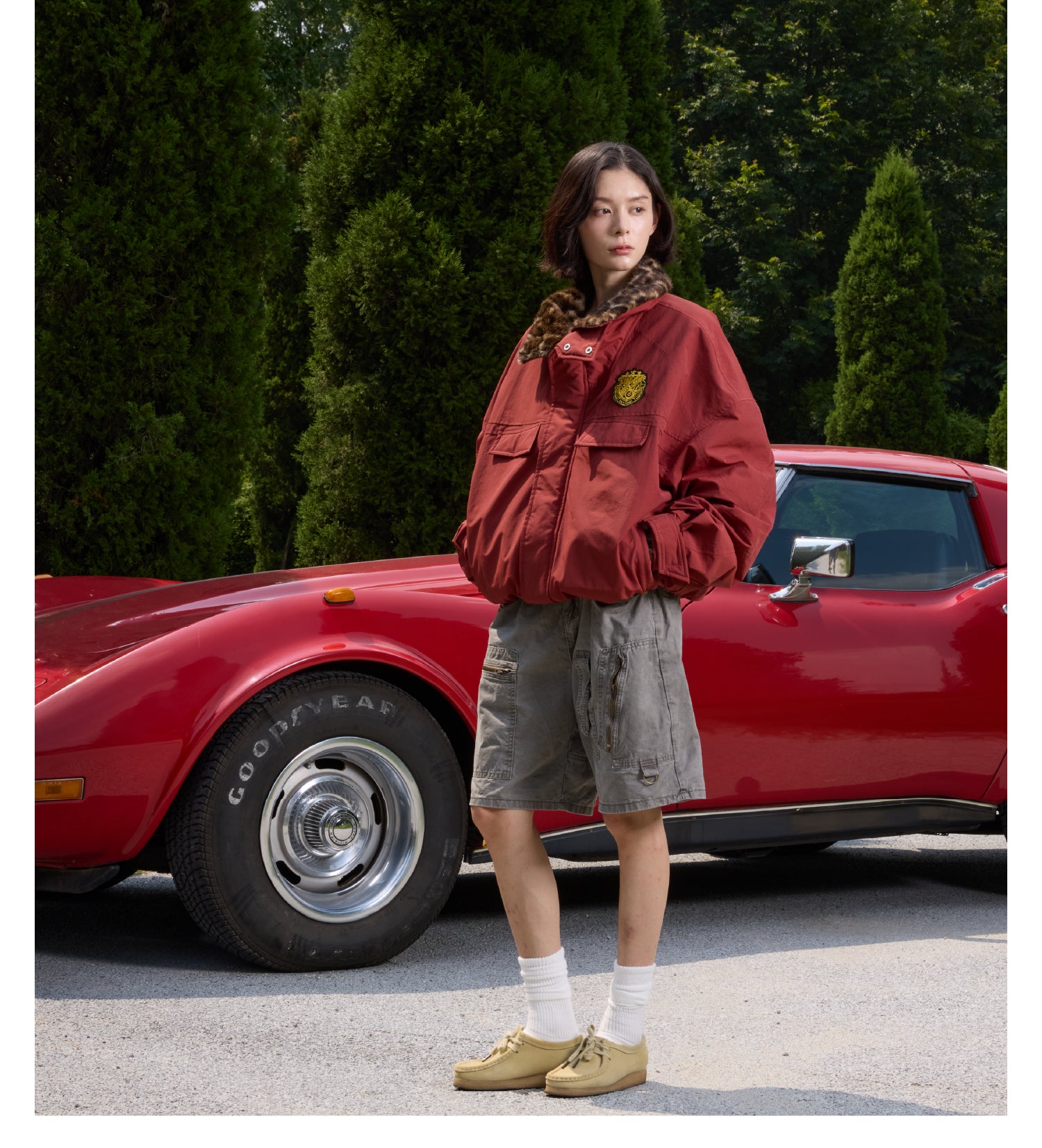 S45 Leopard Fur Lined Nylon Tactical Jacket