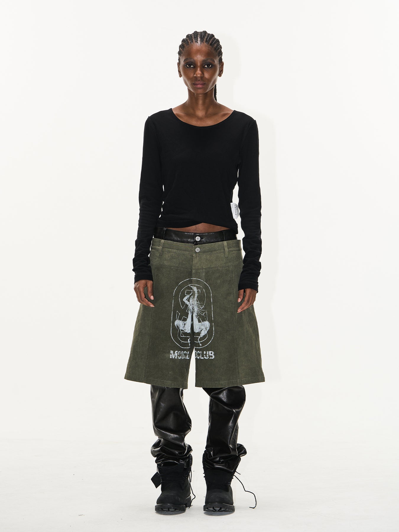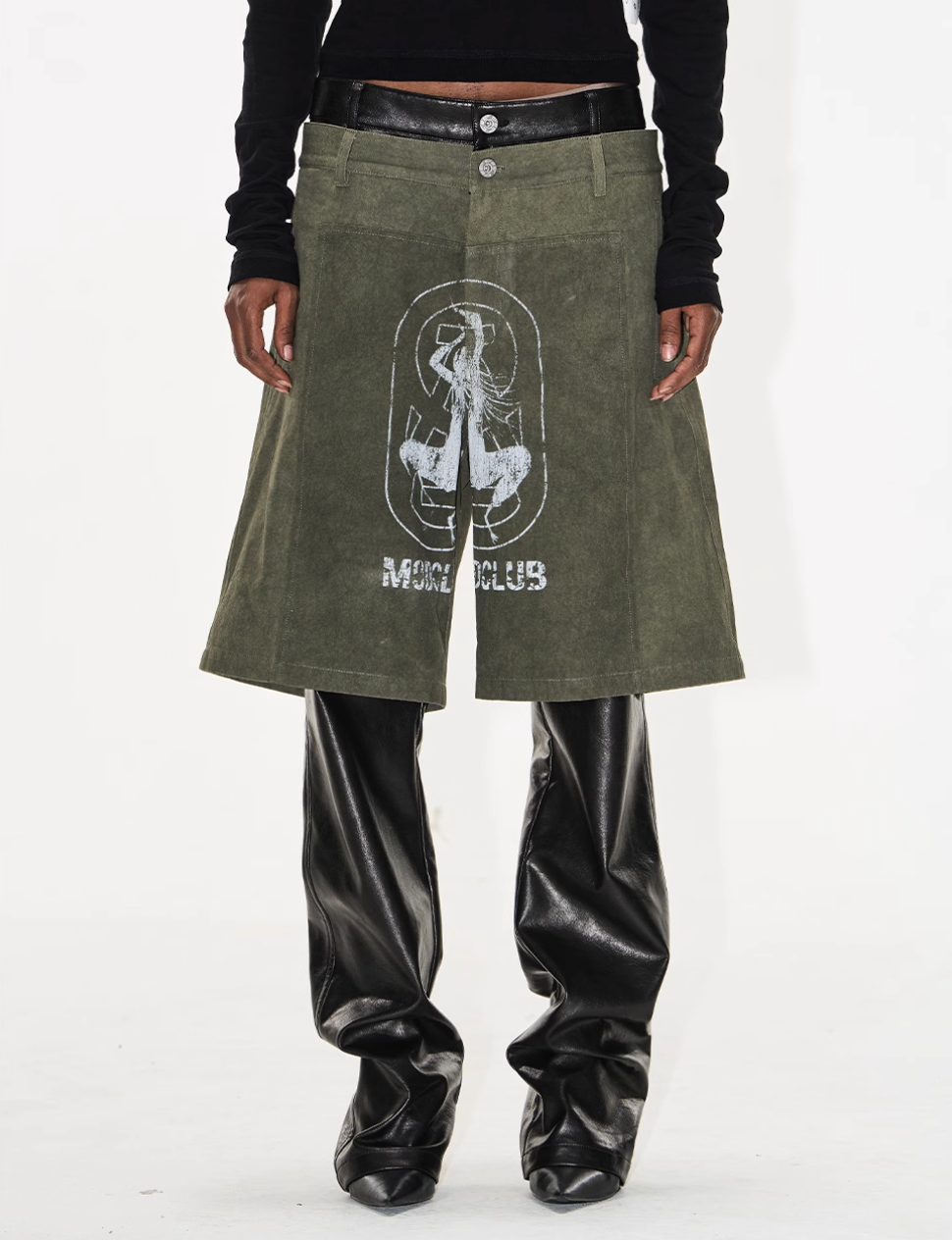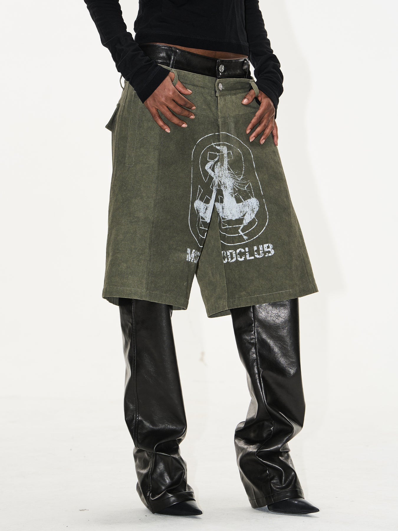 BLIND NO PLAN Double-Layer Dirty-Dye Printed Leather Pants | Face 3 Face