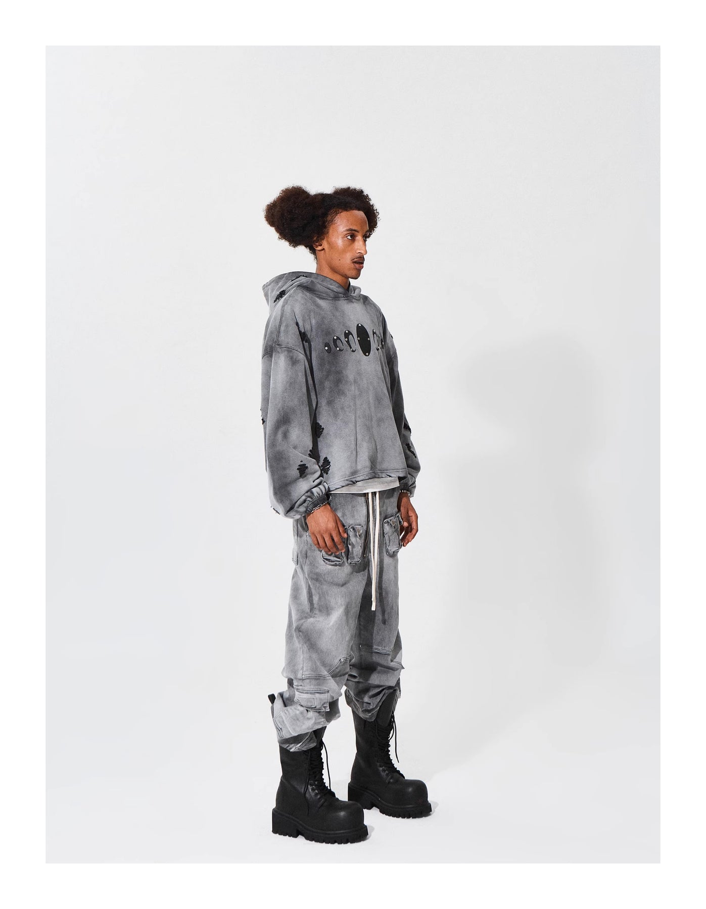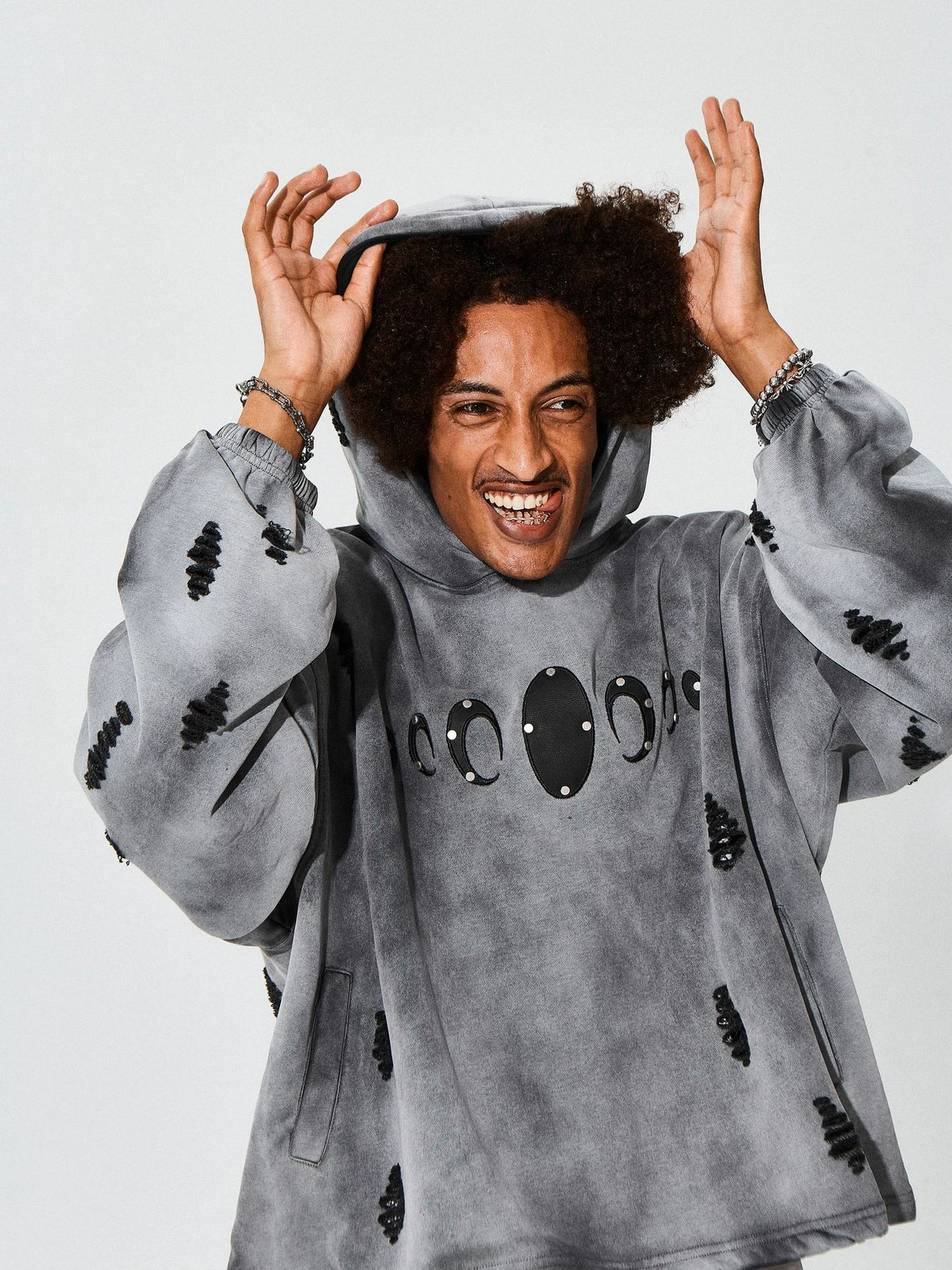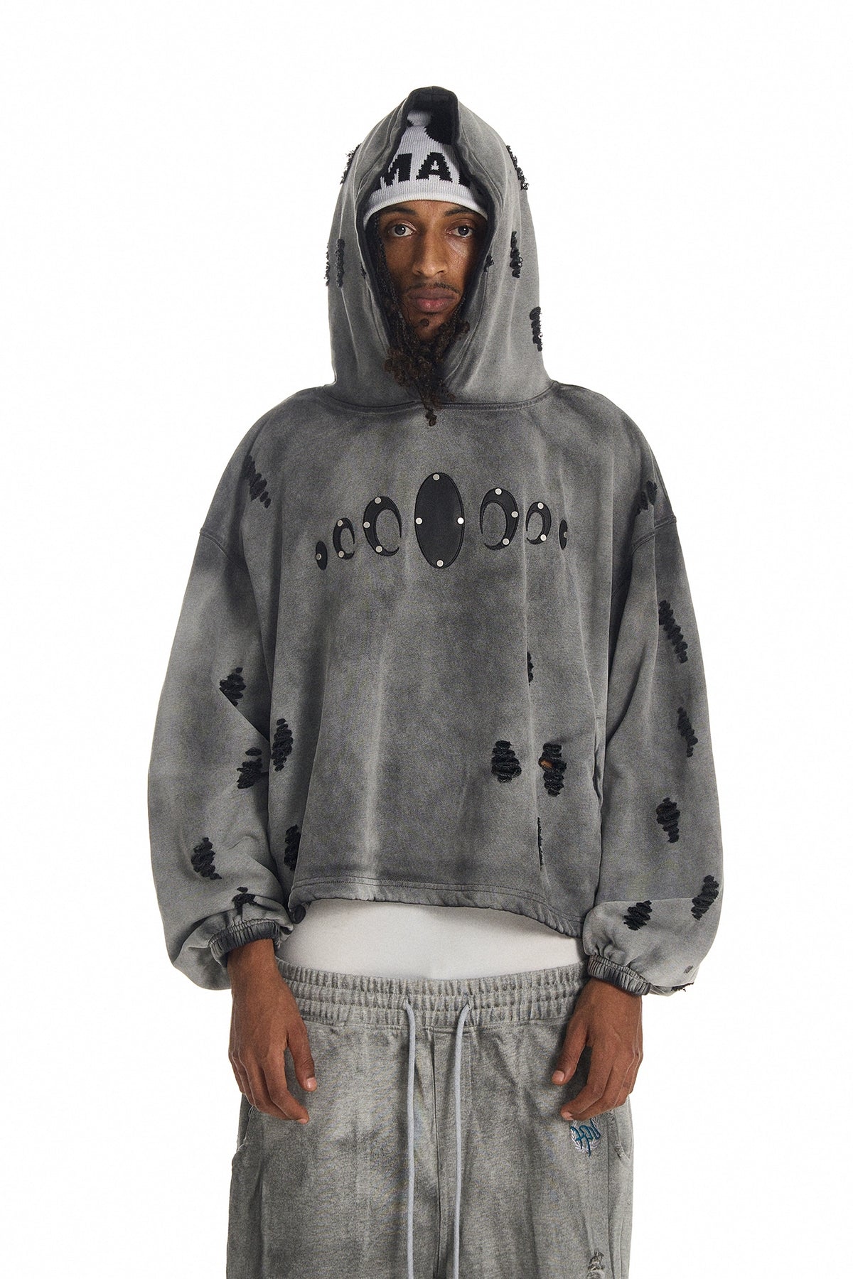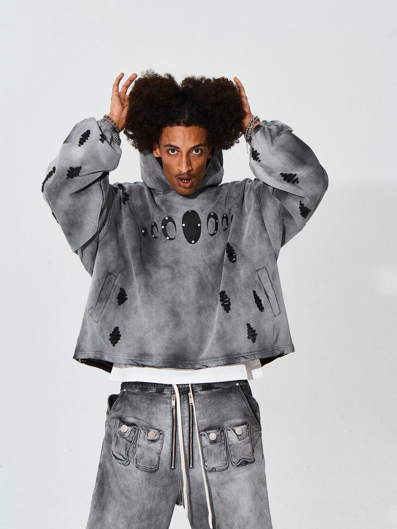 KARMANISTIC Distressed Washed Rivets Hoodie | Face 3 Face