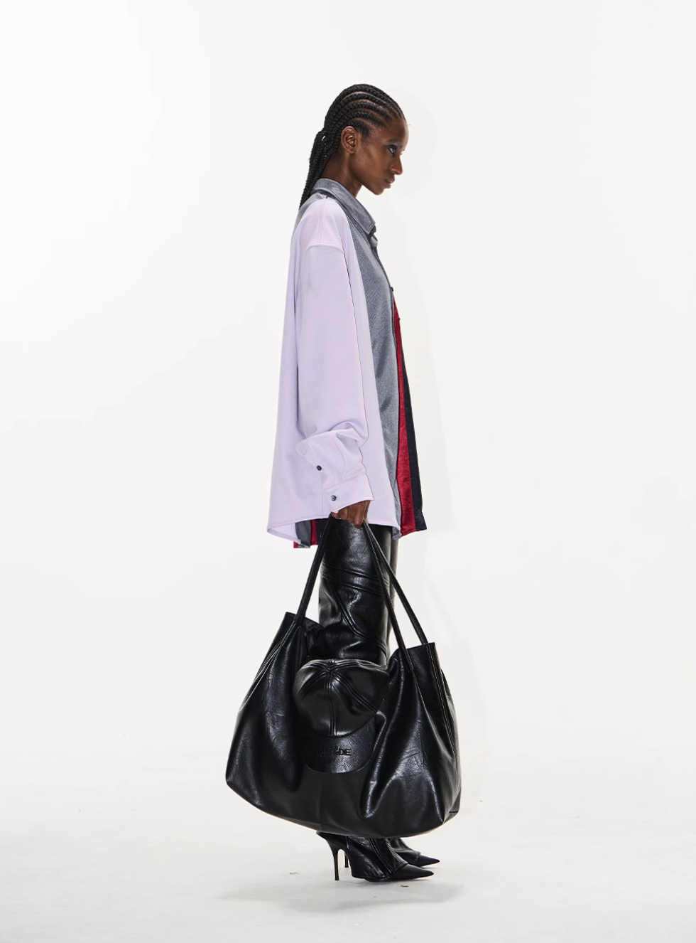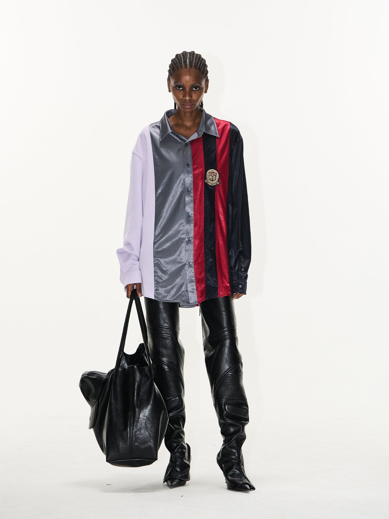 BLIND NO PLAN Colorblocked Patchwork Long Sleeve Shirt