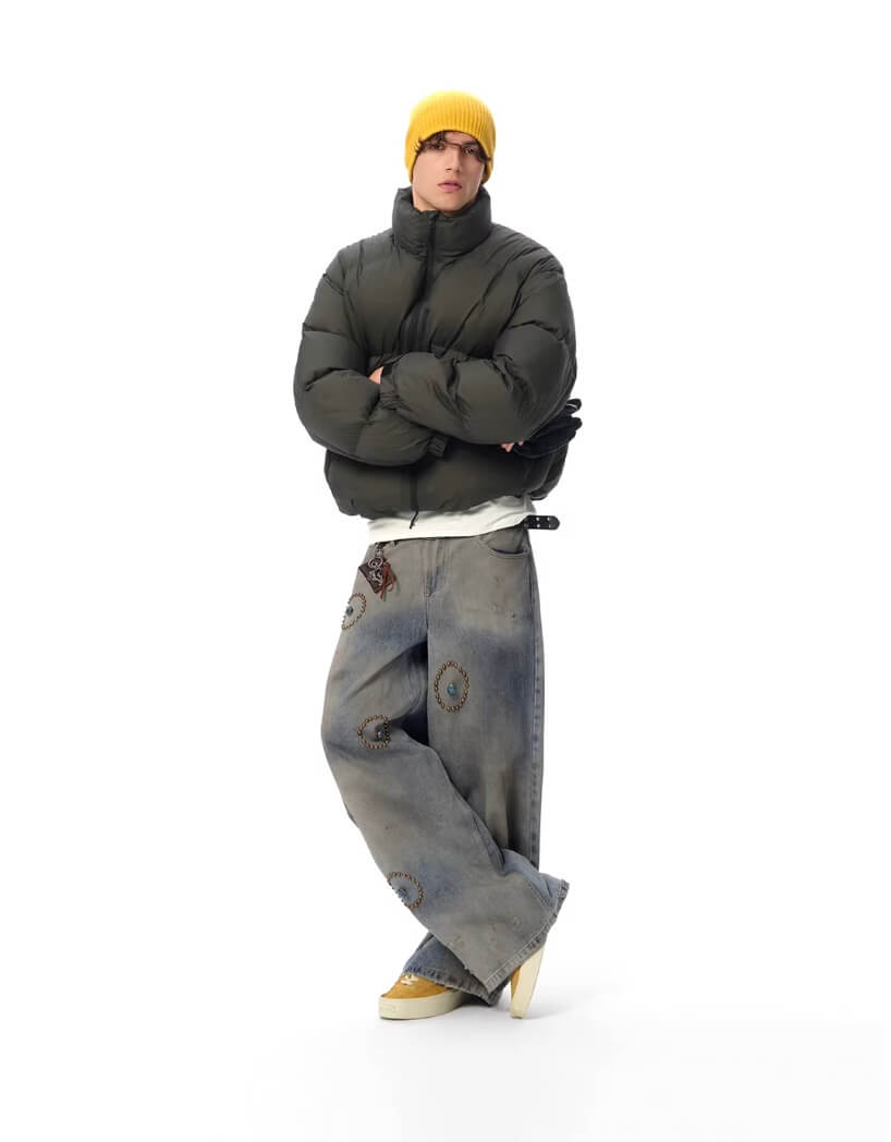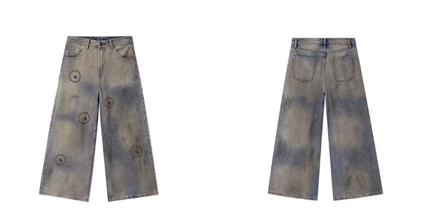 JHYQ Blue Beaded Studded Curved Seam Machete Jeans