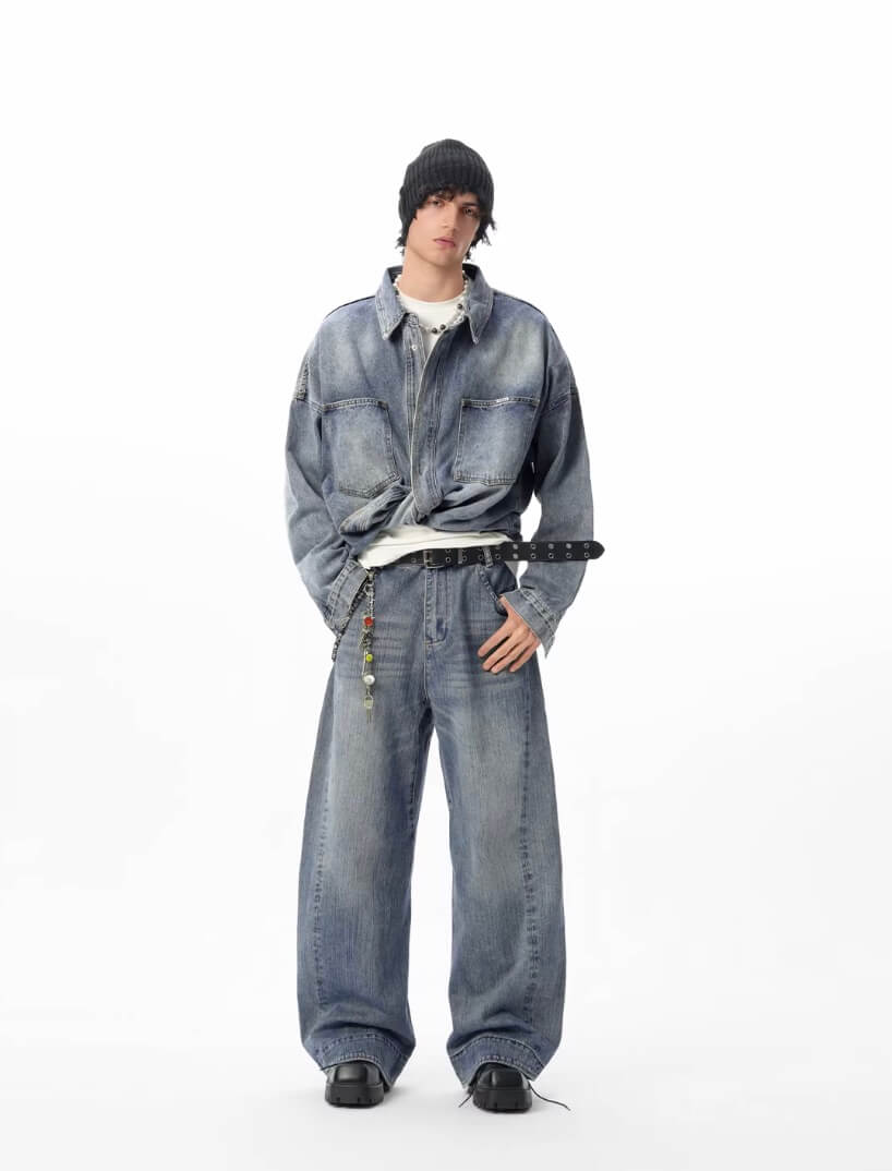 JHYQ Vintage Washed Patchwork Baggy Jeans | Face 3 Face