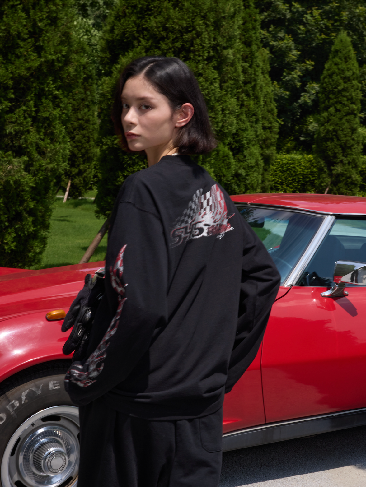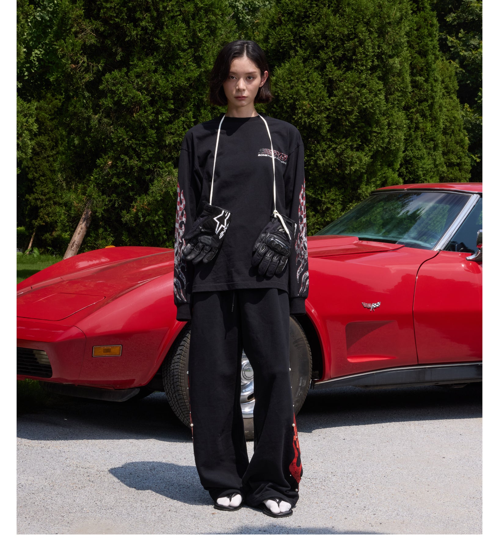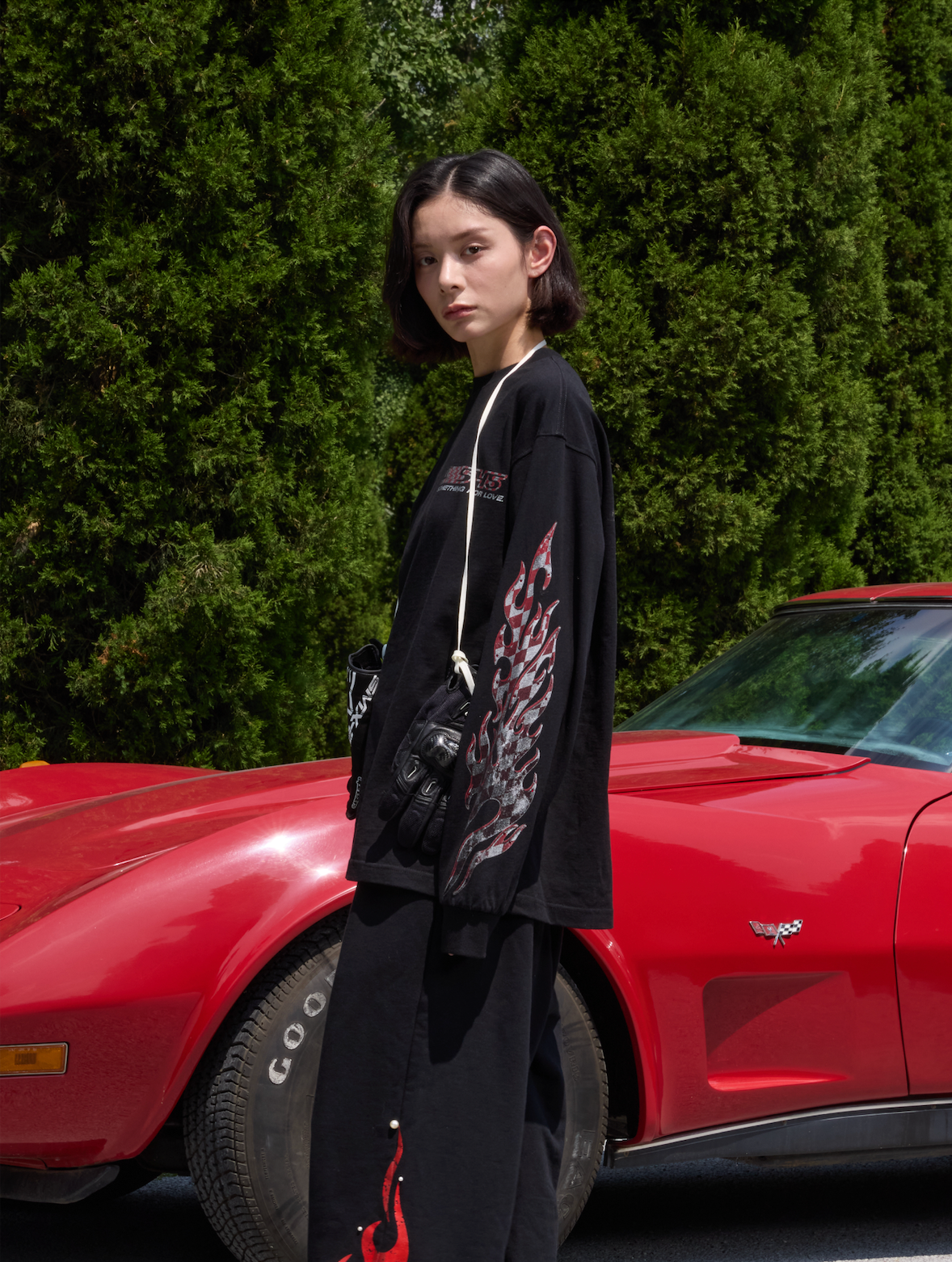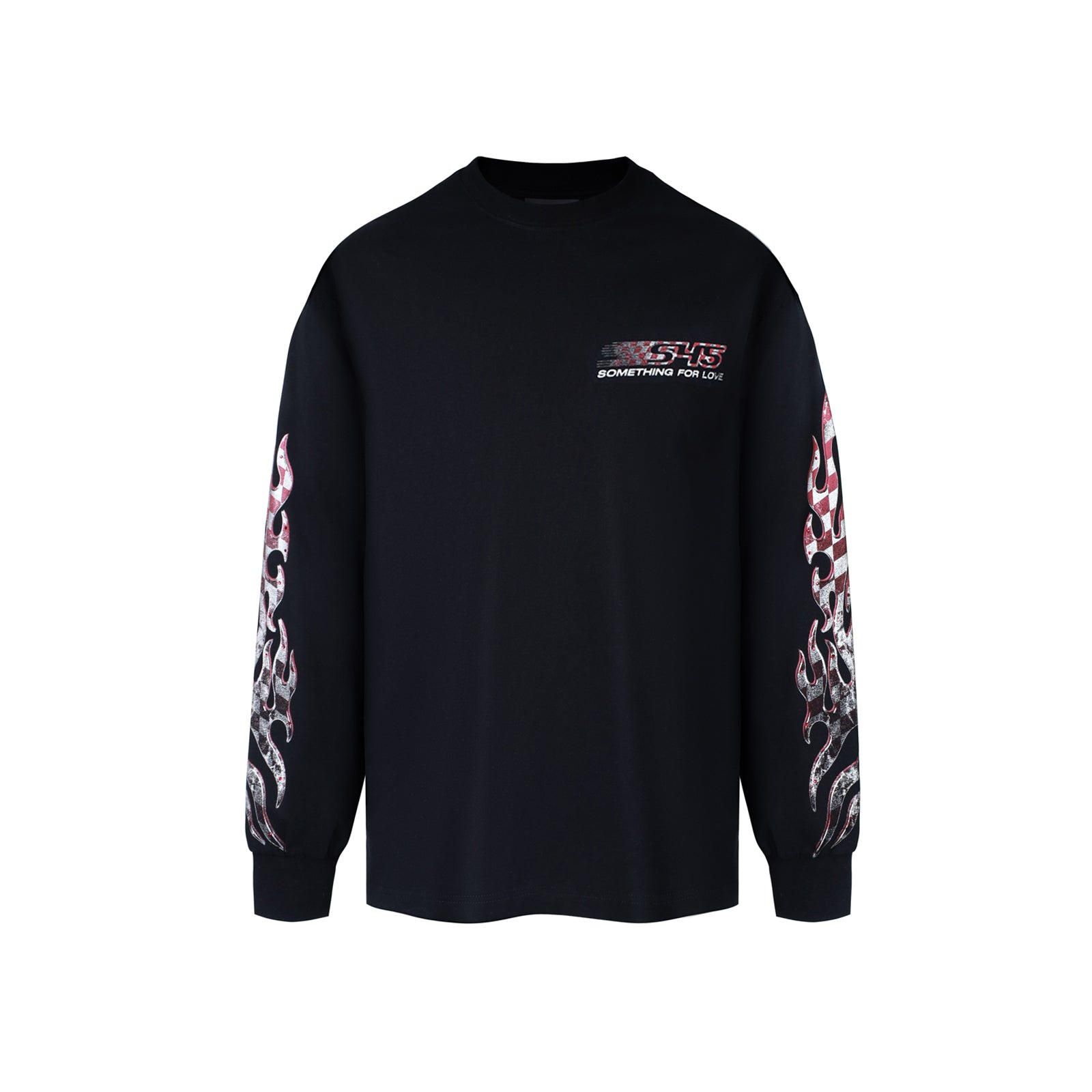 S45 Checkered Flag Flame Print Long Sleeve Tee