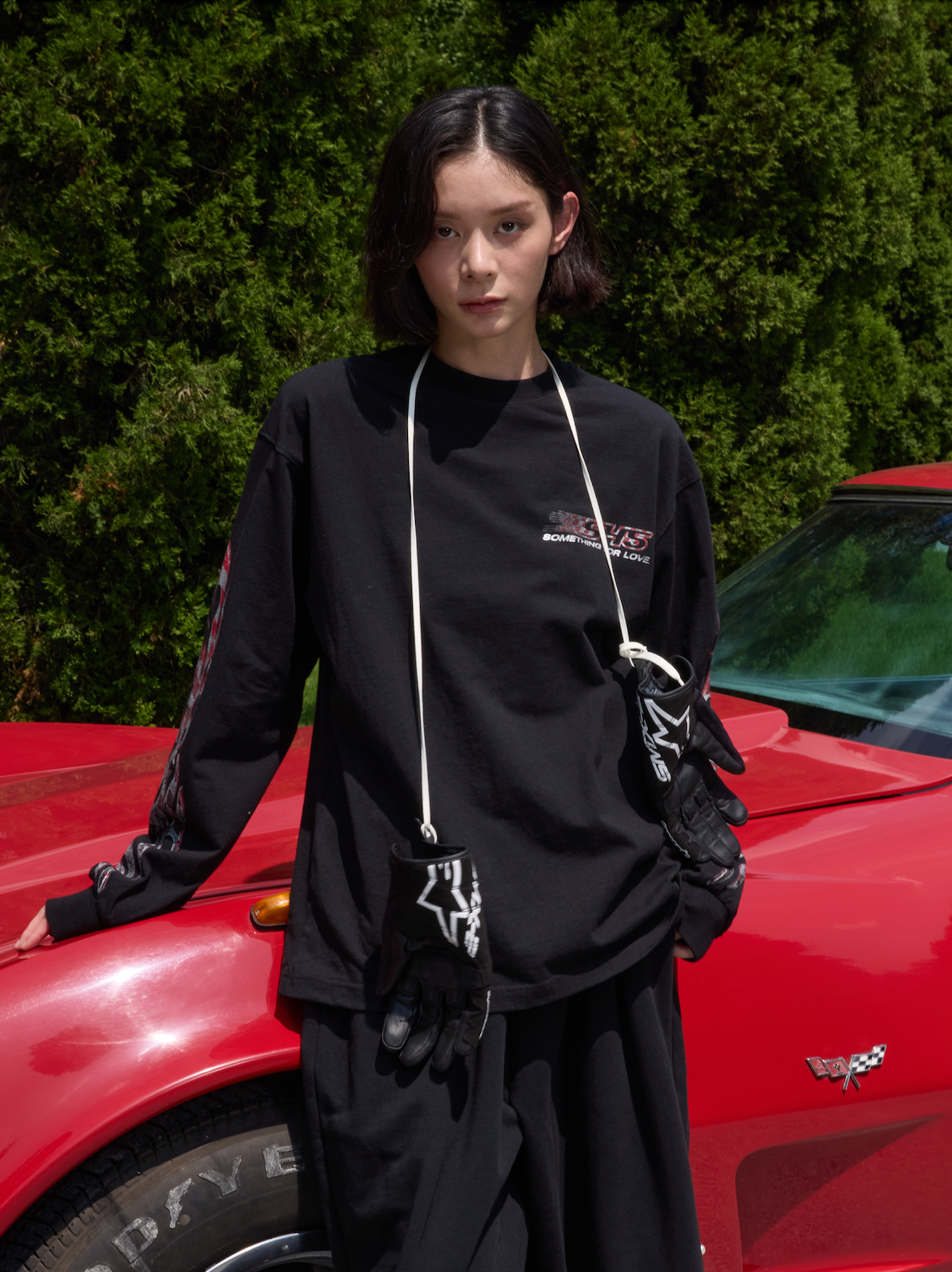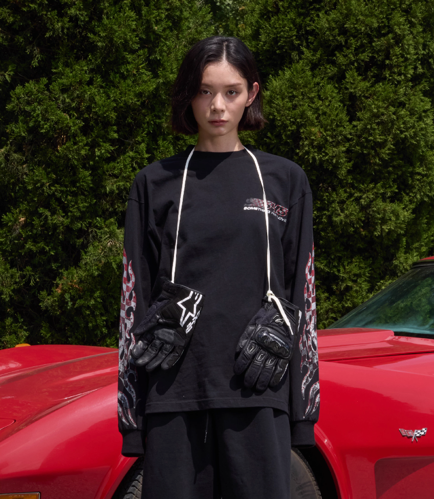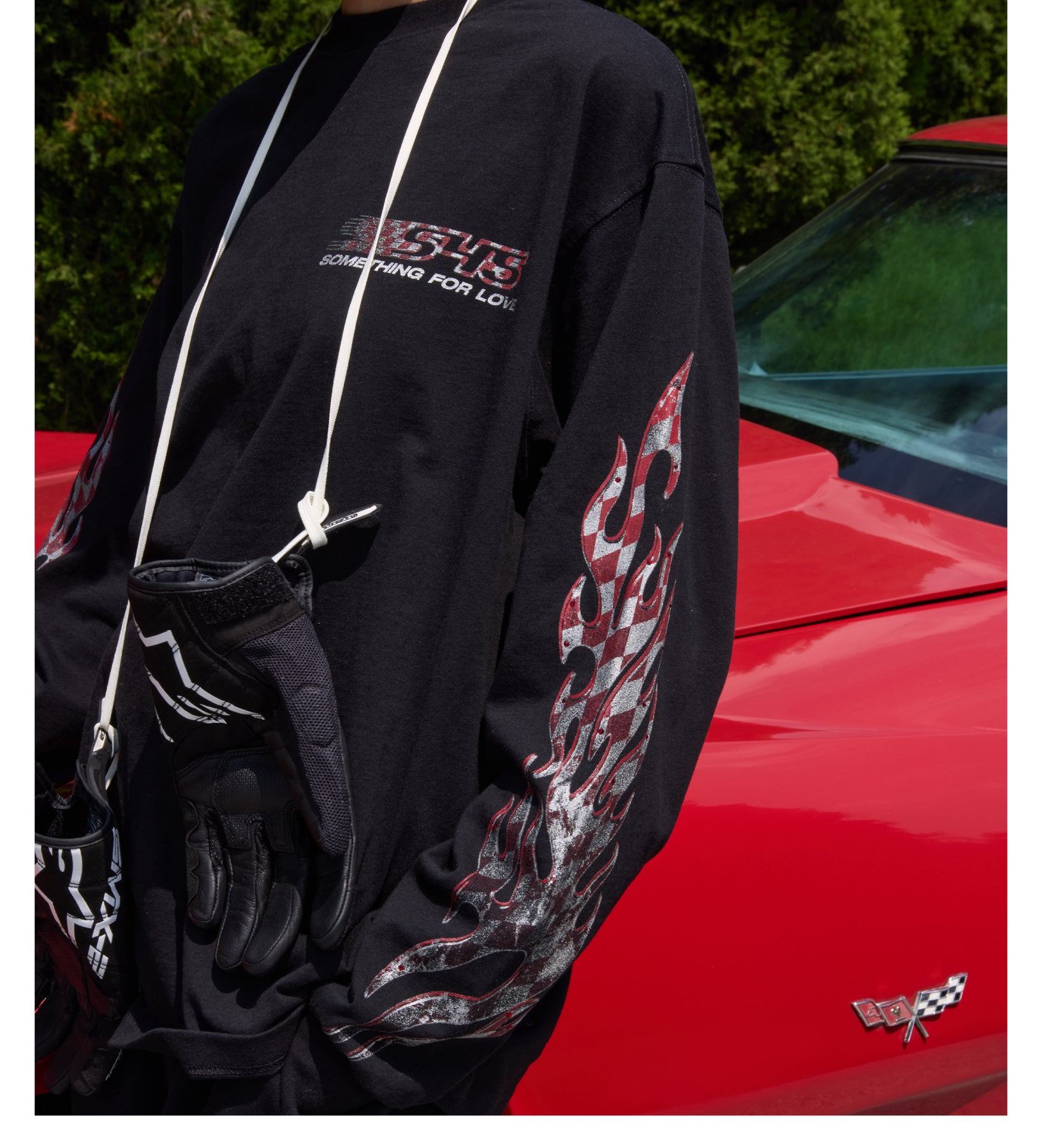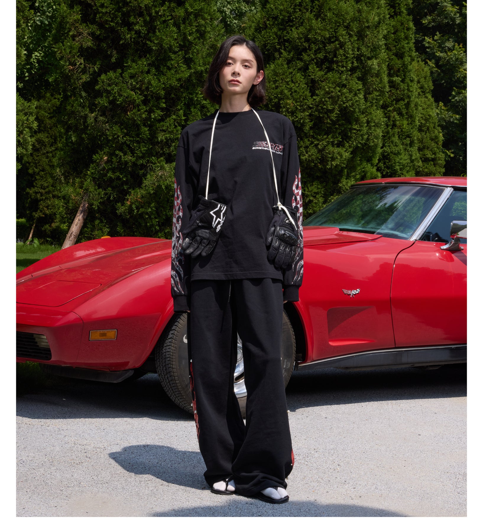 S45 Checkered Flag Flame Print Long Sleeve Tee