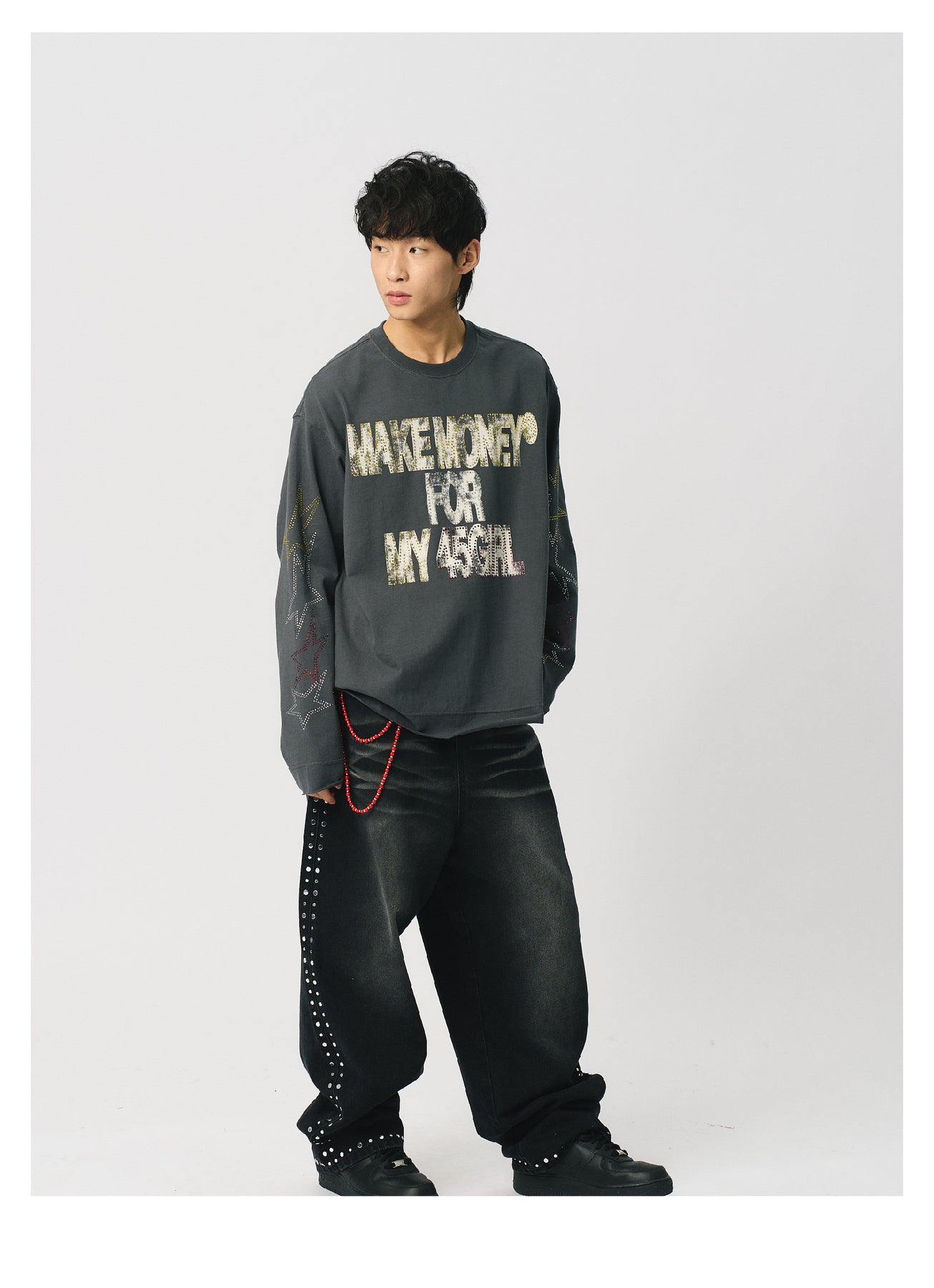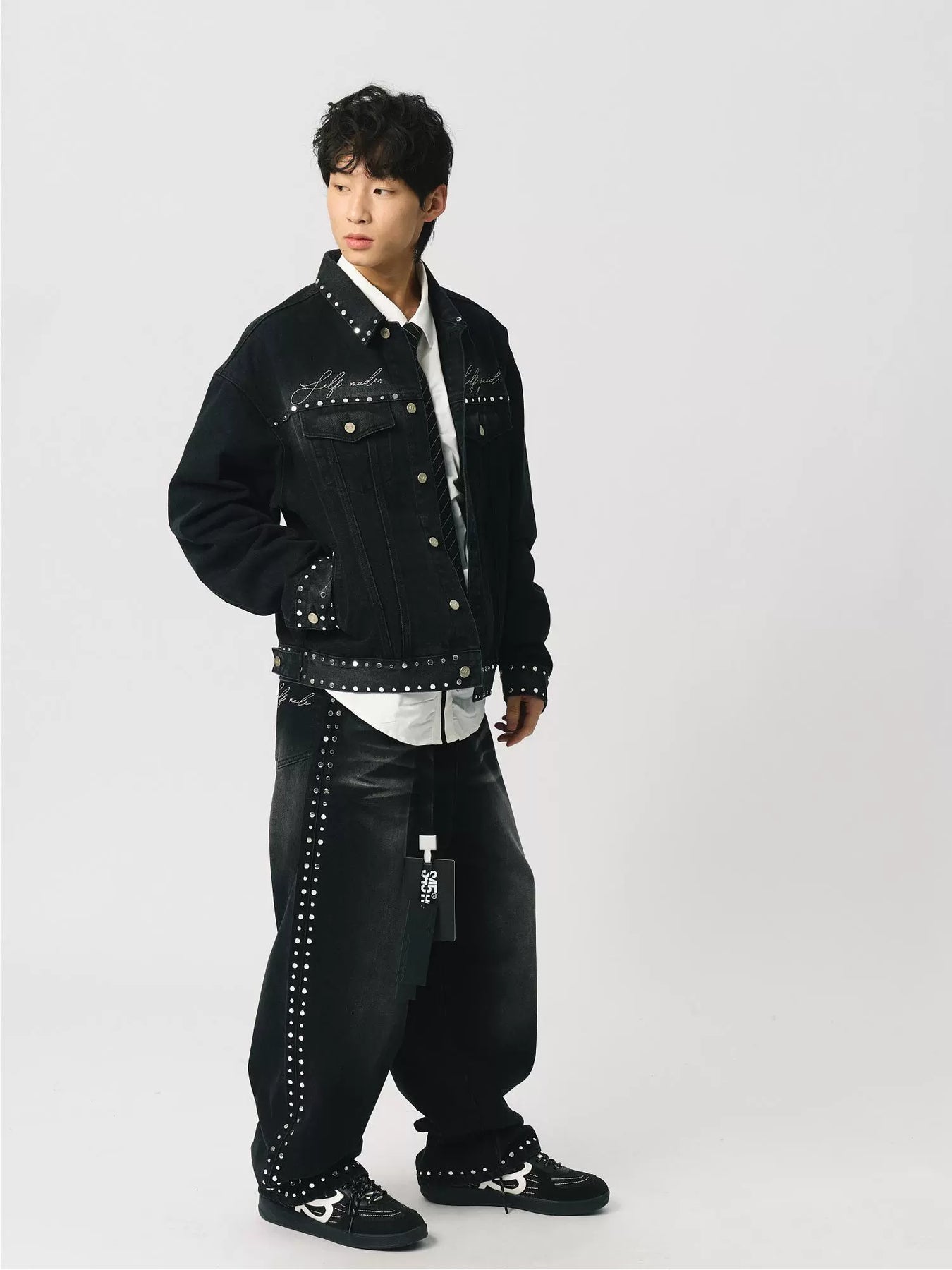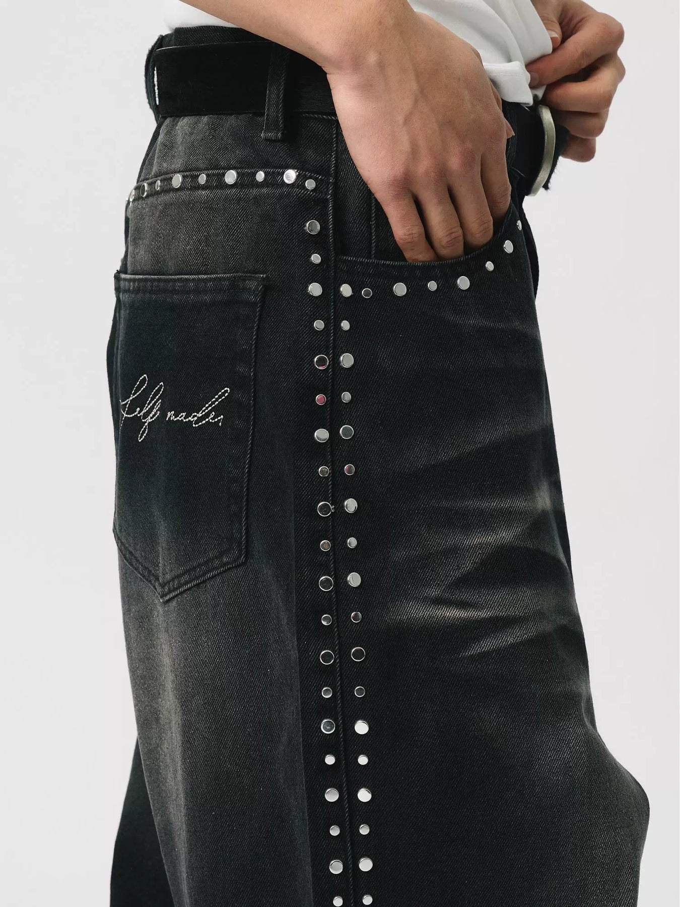 S45 Mixed Stud Washed Jeans | Face 3 Face